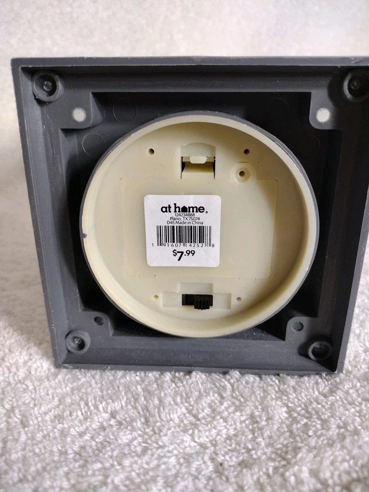 Bulb Life Hours: unknown Lumens: unknown Item Length: 4 in Brand: at home from Plano Texas Assembly Required: No Power Source: Battery Item Width: 4 in Power Consumption: unknown three AAA batteries whatever that is Product Line: unknown Color: Gray Item Weight: 1 lb to ounces Model: unknown Room: Porch Type: Wall Chandelier Item Height: approximately 9 in Sensor Type: Light