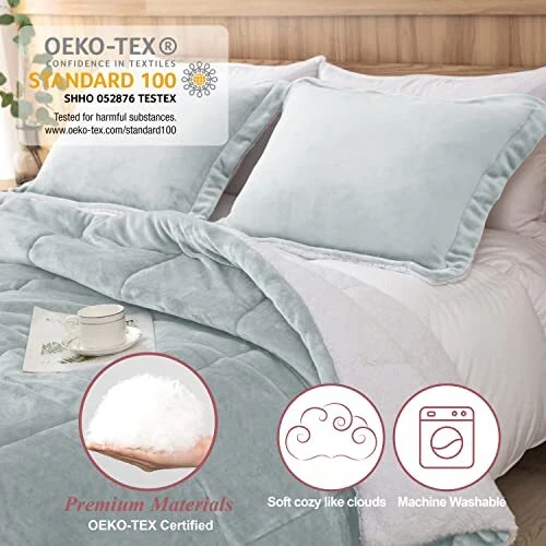 Return Policy Fast Delivery Trusted seller Silver Grey Sherpa Comforter Set Full Queen Size, All Season Soft Warm Fleece Blanket, Winter Bedding Sets with 2 Pillow Shams Product Description Comfy down alternative Sherpa: One side of the fleece lined comforter is made of sherpa, the other of micromink, which will always keep you warm during the cold nights and allow a high-quality sleep. An ideal Happy New Year gift for family and friends. Soft and luxurious: This warm and furry faux fur comforter is filled with lightweight microfiber, which is ideal for use in the spring and cold winter nights. Enjoy its ultra-soft and comfortable touch. The luxurious colors of the Sherpa comforter will suit any bedroom style as well as brightening it. 3-piece set: Available in 1 comforter (Queen: 90”x88”) and 2 pillow shams (20”x26”). Perfect for full or queen size bed. Easy care: Machine washable in cold water, low temperature drying for trouble-free care. Caution: never bleach and never dry clean. This warm sherpa comforter blanket retains its original soft, fluffy shape even after a long wash. After-sales : if for any reason you are unhappy with your purchase, please feel free to contact our aftersales service team. We will work quickly to resolve any issues. Shipping Returns Payment Shipping Shipping is FREE to all addresses other than APO/PO boxes in the lower 48 states. All our stock ships from US-based warehouses. Shipped via USPS or UPS (depending on location and package weight) Unless stated otherwise, all orders will ship within 24-72 hours of your payment being processed. Check our feedback to see the great reviews of FAST shipping we offer. Returns Seller does not accept returns Payment We currently accept payment via eBay managed payments only. Once payment is cleared, we will dispatch your shipment within 1-3 business days. Please refer to the "Shipping" tab for more information regarding shipping speed to your destination.