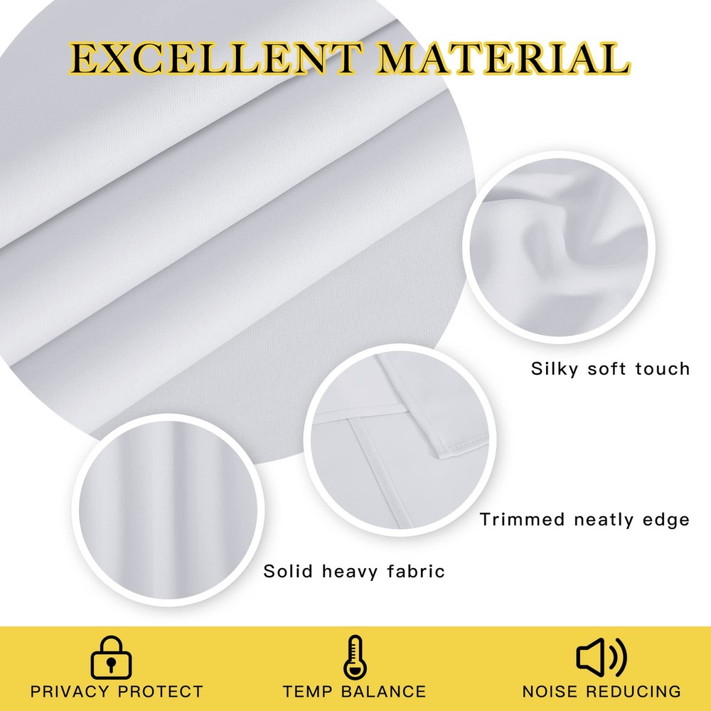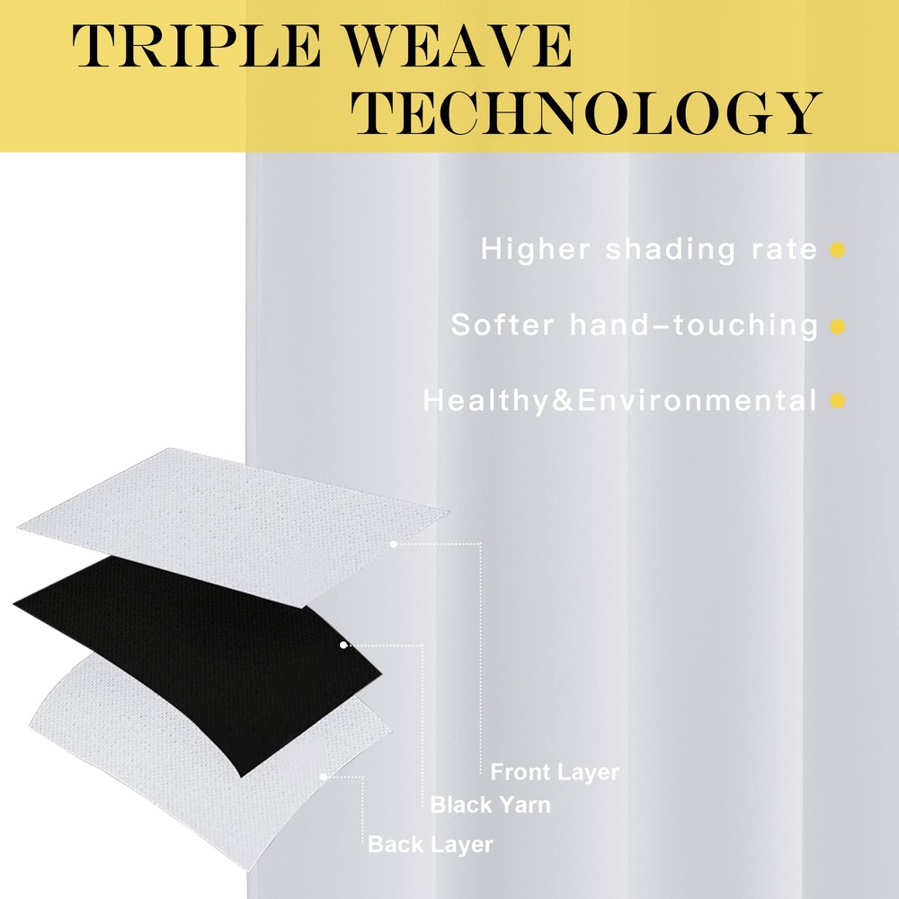 AMAZING FABRIC: The blackout curtain's fabric is super soft and heavy innovative triple-weave polyester fabric. The same material back as of front makes it appear more elegant. The 14 sliver grommets top (inner diameter is 1.6-inch) adds a modern touch and easy hanging. MULTIPLE FUNCTIONAL: These extra wide curtains are wide enough to cover the sliding door perfectly. Besides, the curtain panel helps your patio door to block out most of the light, high performance on thermal insulated, noise-reducing, and privacy-protecting. ENERGY SMART: Triple weave blackout fabric balances room temperature by insulating against summer heat and winter chill, reducing air conditioning costs. Protect your furniture, floors, and artwork from the ravages of the sun, the Patio Door Drapes will pay for themselves off over time. WISE COMPATIBLE: Thread trimmed and wrinkle-free, all sets for you to put them up right away. Suitable perfectly for sliding doors, patio doors, and any large window. These wide curtains can be hung separately, or combine with sheer curtains. EASY CARE: Good-quality finishing will withstand years of use. Machine washable and Wash the water temperature below 86F. Mild detergent no bleaching. Low-temperature ironing. Don’t use sharp things scratching curtains.