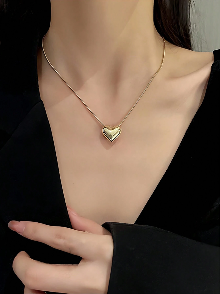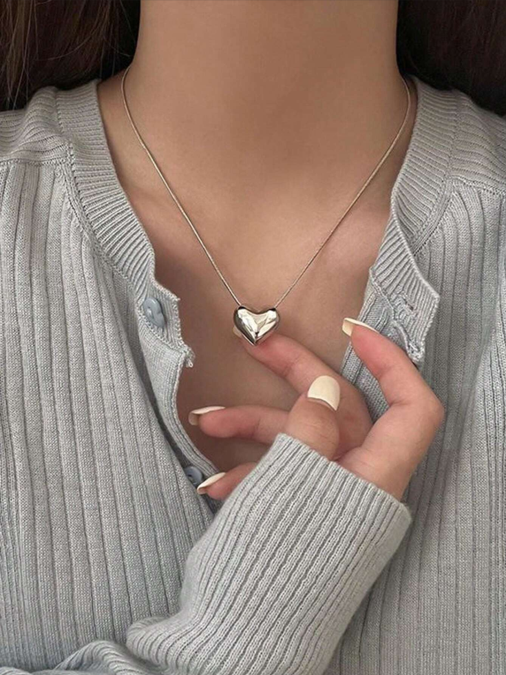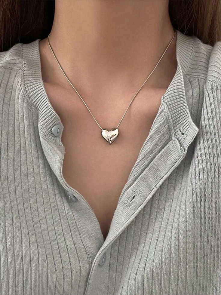 Silver Heart Necklace with Gold Finish, Perfect Women's Gift Jewelry