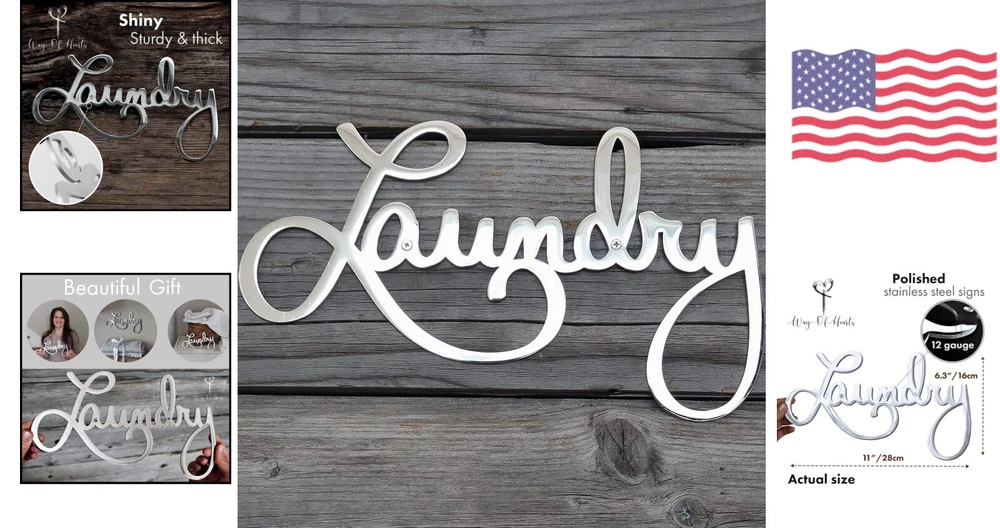 Silver Metal Wall Decor Sign - 11 X 6.3 Inches - Hand Polished Stainless Steel ‹ › ‹ › ‹ › ‹ › ‹ › ‹ › ‹ › ‹ › ‹ › ‹ › ‹ › Silver Metal Wall Decor Sign - 11 X 6.3 Inches - Hand Polished Stainless Steel Features: Premium product, perfect gift idea for laundry room signs Complements various laundry room design styles High-quality 304 polished stainless steel, resistant to rust Ready to use, easy to install with all hardware included Laser cut out sign, great addition to your laundry room Versatile, suitable for indoor and outdoor environments Benefits: Durable and long-lasting Easy to install with all necessary hardware included Enhances the decor of your laundry room Perfect for farmhouse laundry room decor Suitable for both indoor and outdoor use Why choose our Silver Metal Wall Decor Sign? Upgrade your laundry room decor with our premium Silver Metal Wall Decor Sign. Made of high-quality stainless steel, this sign is durable, rust-resistant, and easy to install. It complements various design styles and adds a touch of elegance to your space. Whether you hang it indoors or outdoors, this sign is sure to enhance the look of your laundry room. Don't settle for ordinary decor - choose our Silver Metal Wall Decor Sign for a stylish and functional addition to your home. Order yours today and elevate your laundry room decor to the next level! Shipping Free & Fast Shipping - We offer free shipping to most of the USA with a normal delivery time of 3-7 days. However, due to the current situation, additional delivery time (up to 3 weeks) may be required for some items. Alternative Carriers - We may use alternative carriers (e.g. USPS, FedEx, UPS, etc.) to ensure your package arrives safely and on time. Due to the use of multiple carriers, we are unable to provide a tracking number automatically. Handling Time - Orders are processed and shipped within 1-2 business days of receiving cleared payment. Shipping Restrictions - Shipping to Alaska, Hawaii, Puerto Rico, Guam, and other US territories may incur shipping charges or delivery restrictions. Please contact us before ordering, or your order can be refunded/cancelled. State Restrictions - There may be restrictions based on your state of purchase. For example, certain items may not be shipped to California due to state regulations. Contact for Tracking Updates - If you require tracking updates or have any concerns about the delivery of your order, please feel free to contact us, and we will be happy to assist you. Return 30-Day Hassle-Free Returns - We want you to be completely satisfied with your purchase. If you are not, you can return the item within 30 days of receiving it for a full refund or exchange. Easy Return Process - To start a return, simply contact us and we will provide you with a prepaid return shipping label and detailed instructions. Restocking Fee - There are no restocking fees for returns. However, the buyer is responsible for return shipping costs if the return is not due to a seller's error. Refund Processing Time - Refunds will be processed within 5 business days of receiving the returned item in its original condition. Payment We accept all major credit cards, PayPal, and Apple Pay for your convenience. Your payment information is secure and encrypted to ensure a safe and seamless transaction. Please complete your payment within 3 days of purchase to avoid any delays in shipping. Feedback Your feedback is extremely important to us. We strive to provide the best products and customer service possible. If you are satisfied with your purchase, please take a moment to leave us a positive review. If you have any concerns or issues with your order, please contact us before leaving negative feedback. We are committed to resolving any problems and ensuring your satisfaction. Contact Us If you have any questions or concerns, please feel free to reach out to our customer support team. You can contact us through the eBay messaging system. We are available Monday to Friday, 9:00 am to 5:00 pm EST, and we will do our best to respond to your inquiry within 24 hours. Thank you for supporting our small family business!