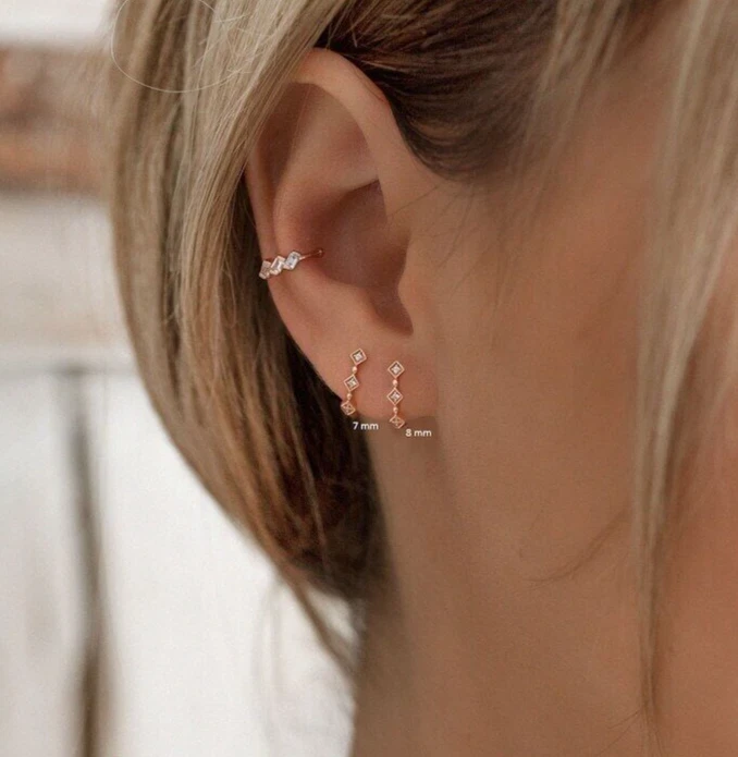 Crafted to elevate your jewelry collection, these Huggie earrings are an embodiment of modern elegance. Their hoop design gracefully hugs the cartilage, helix, and lobe, offering a secure fit with a classic latch back closure. Each earring is a testament to exquisite craftsmanship, handcrafted in India, and is available in a radiant yellow gold tone. DESCRIPTION -------------------- • Earring Size: → Earring gauge: 20 → Inner Diameter: 7mm • Moissanite Details: → Color: D Color → Clarity: VVS Warranty and Service: ------------------------------ • We offer a 1 Year warranty on all our Jewelry. • We also provide paid service after completion of the warranty. Thank you for visiting our store, see you soon. --------------------------------------------------------------