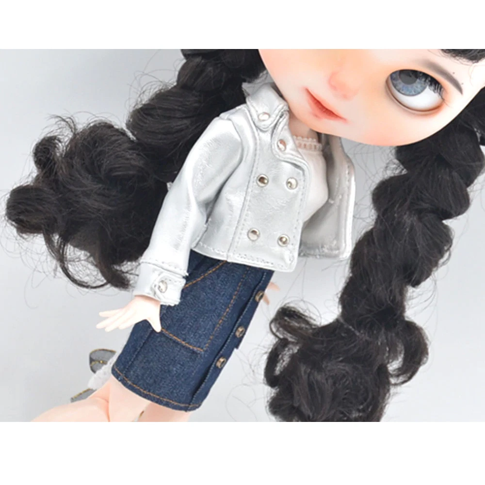 Silver Moto Jacket Outfit for 12" Blythe & BJD Dolls