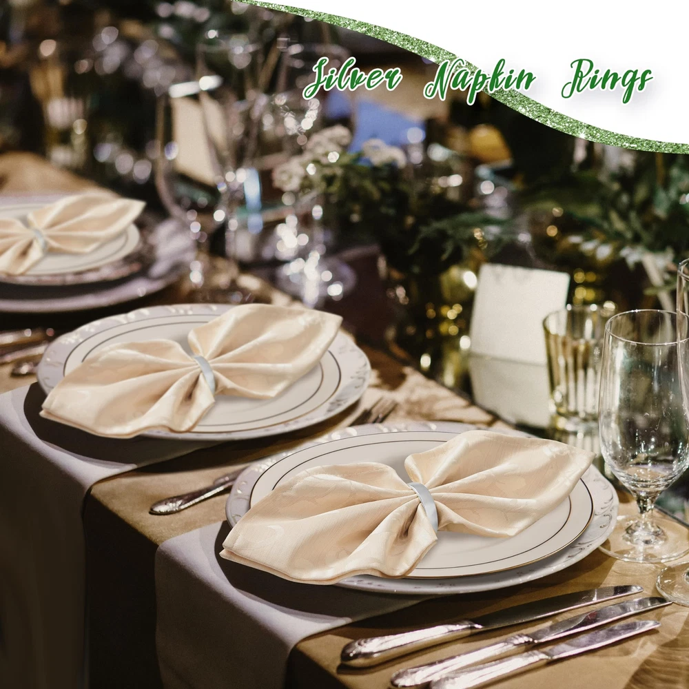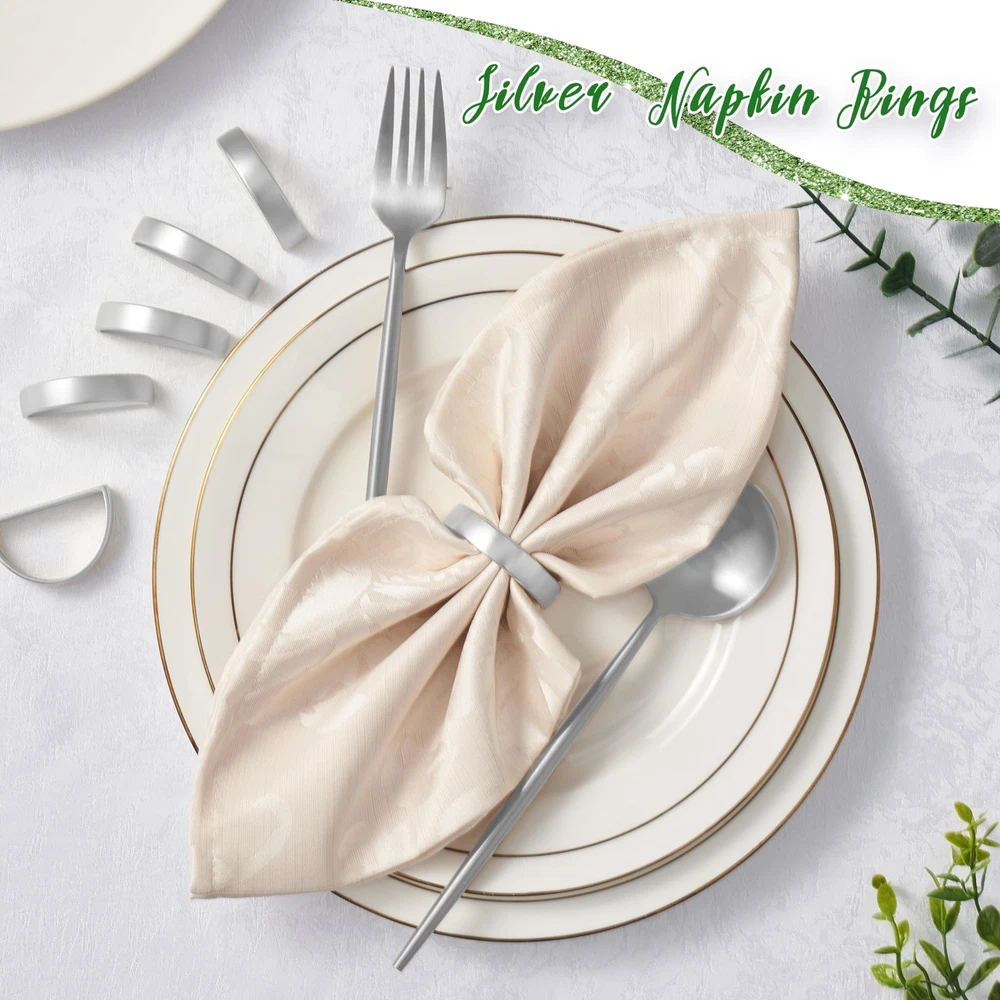 【HIGH-QUALITY MATERIALS】: We use premium metal materials to manufacture these napkin rings, ensuring their durability and stability. This design not only offers a beautiful aesthetic but also guarantees long-lasting usage. 【VERSATILE USAGE】: These napkin rings are not limited to formal dinners or holiday gatherings but can also be used for daily dining and various special occasions. They are suitable for home dining tables, restaurants, banquet halls, and more, infusing a distinctive style into your dining experience. 【SIMPLE & PRACTICAL】: The silver napkin rings feature a simple open-close design, allowing for easy and quick use. Simply roll up your napkin and slide the napkin ring over it, providing a neat and organized presentation. Additionally, the napkin rings prevent napkins from becoming loose or slipping during meals. 【GREAT GIFT IDEA】: Each silver napkin ring comes with an elegant gift box packaging, making it an excellent choice for gifting. Whether it's a birthday gift, wedding present, or holiday gift, these napkin rings will showcase your taste and thoughtfulness. 【WHAT YOU GET】: May this napkin ring accompany you through every joyful family meal. AND Don’t worry if you have any questions or problems about your purchase, just let us know!