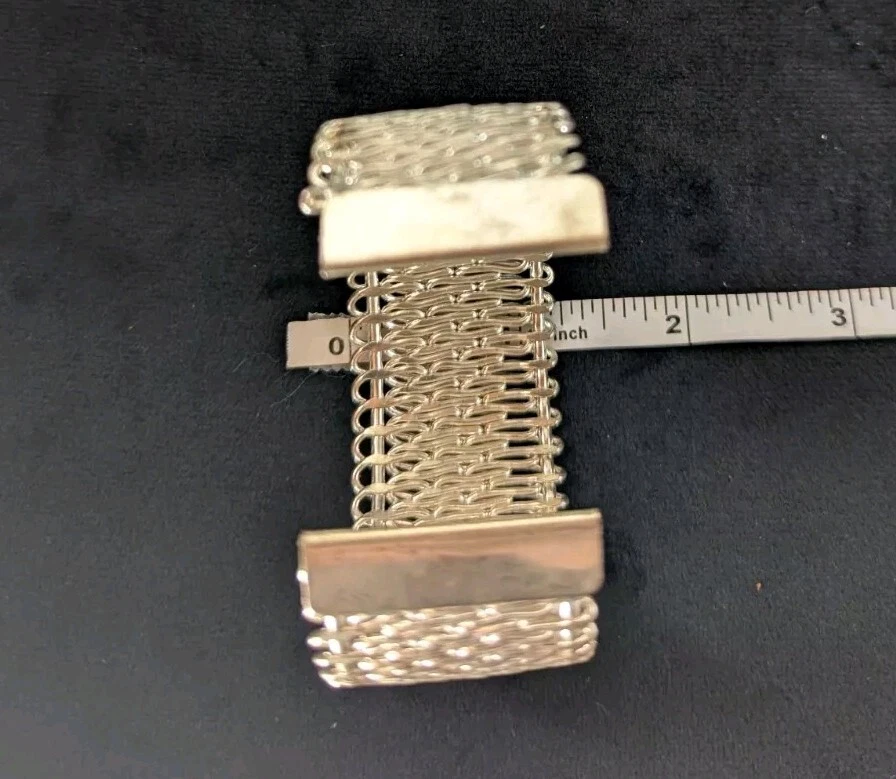 A silver color adjustable open-cuff bangle with some signs of wear on the bottom of the bangle (please refer to images for exact wear/scratches) Color: Silver color Style: open cuff bangle Metal: Unknown Size/Measurements: Please refer to photos; adjustable Condition: Used, good --> Offers welcome!! *Fast Shipping! **Boutique Packaging** ***Smoke-free, Pet-free household ****DISCOUNTS ON BUNDLES AND REDUCED SHIPPING!!**** Tags: Silver, silver color, cuff, open cuff, bracelet, bangle, special occasion, birthday, gift, party, everyday wear, classic, classy, wedding, vacation, quiet luxury, baby shower, bride, bridal shower, bridesmaid, party I do my best to ensure the photos listed are as true to color as possible. With variations in different monitors, lighting sources, digital photography, product color may slightly vary.