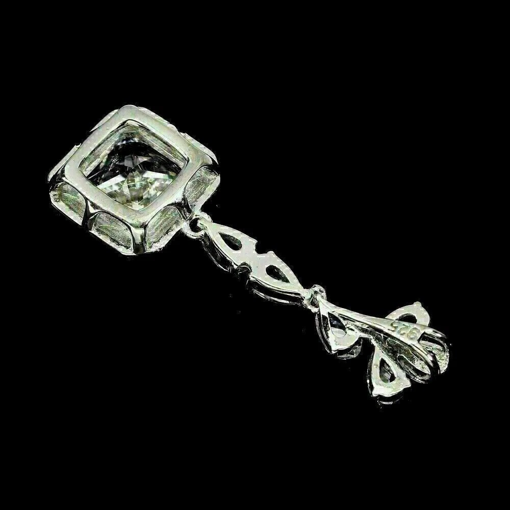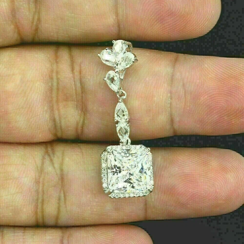 Solid sterling silver 925 stamped white gold coated pendant which is in a drop dangle design set with princess, pear and round cut faceted lab created zircon stones each measuring 1mm x 1mm, 7mm x 5mm and 10mm x 10mm. The pendant measures 38 mm x 13mm and comes complete with a free 45.7cm 18 inch chain. GIFT BOXED Thanks for looking and please take time to view my other listings #14385 / 14446 / 14449
