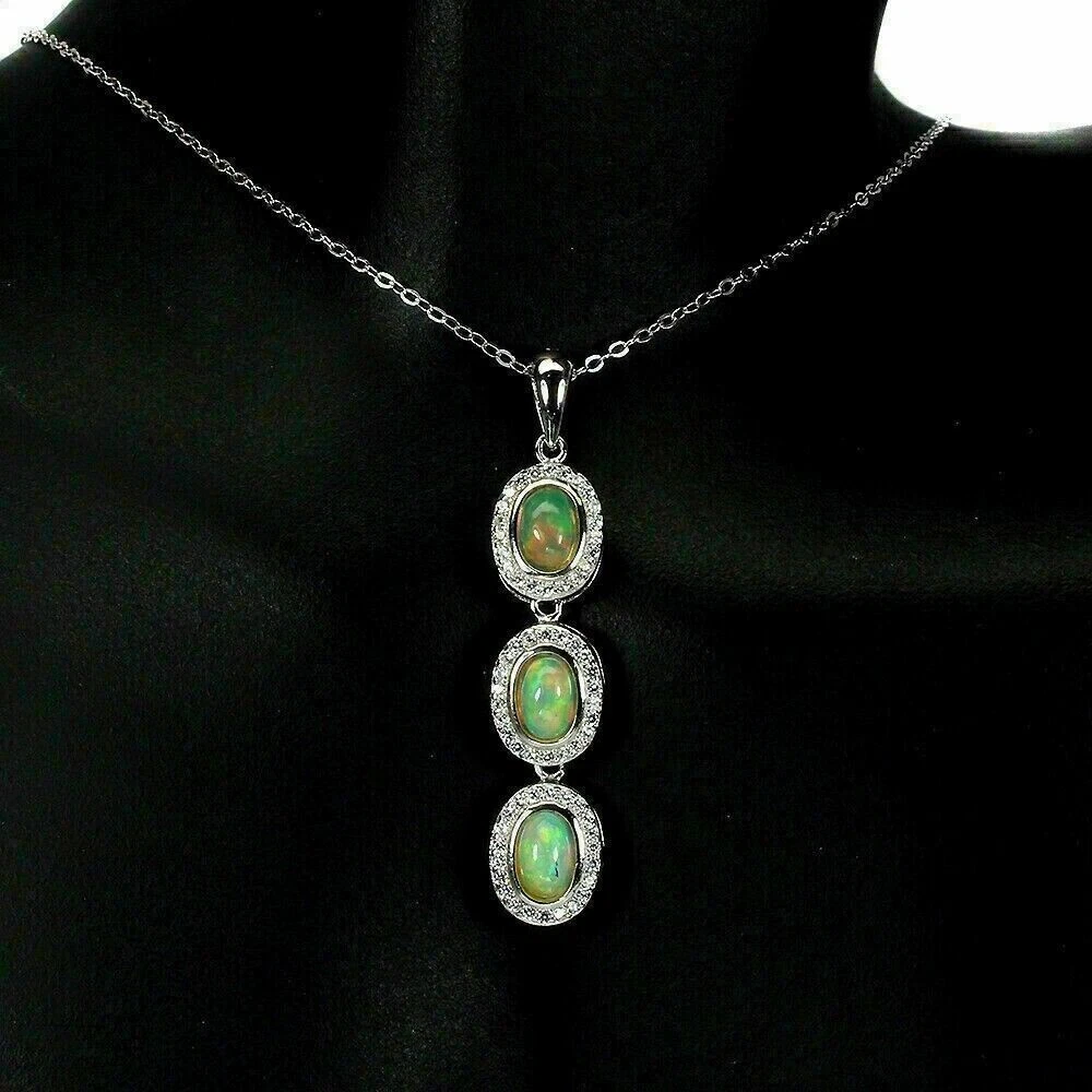 Brand: Unbranded Chain Type: Sterling Silver Style: Pendant Main Stone Shape: Cabochon Main Stone Creation: Natural Metal Purity: 925 parts per 1000 Pendant Shape: Oval Certification: No Necklace Length: 45.7cm 18in Colour: White Fire Lustre Main Stone: White/Precious Opals Base Metal: Sterling Silver Features: Nickel-Free Material: Gemstone Main Stone Treatment: Not Treated Hallmarked: Yes Total Carat Weight: 3.2 ctw Main Stone Colour: White MPN: Does Not Apply Country of Origin: Ethiopia Diamond Colour Grade: 0 Number of Gemstones: 69 Diamond Clarity Grade: 0 Number of Diamonds: 0 Secondary Stone: Created White Zircon Stones Type: Necklace Setting Style: Prong Cut Grade: Very Good Metal: Sterling Silver Coloured Diamond Intensity: 0