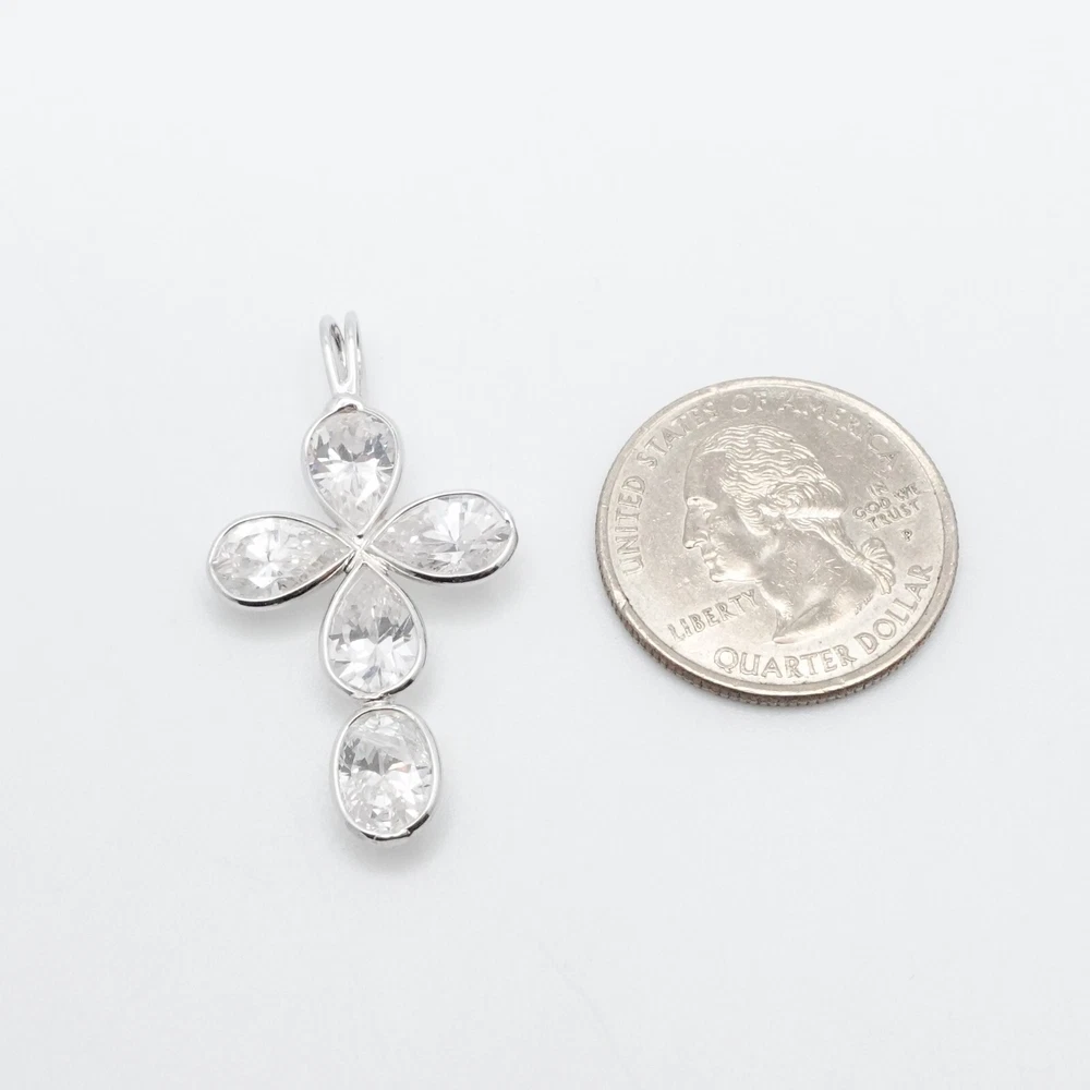 Welcome to my e B a y Store Silver Plated Clear Cubic Zirconia Cross Pendant Total Height - 1.5" Width - 0.78" Bail Height - 5mm Bail Width - 3.5mm Total Weight - 3.6 Grams Bid With Confidence Feel Free to ask any questions before bidding please If you would like additional pictures please send me a message Check out my other listings for more great deals! 100% Authentic or your Money Back Guarantee!! Free Shipping on All Items!