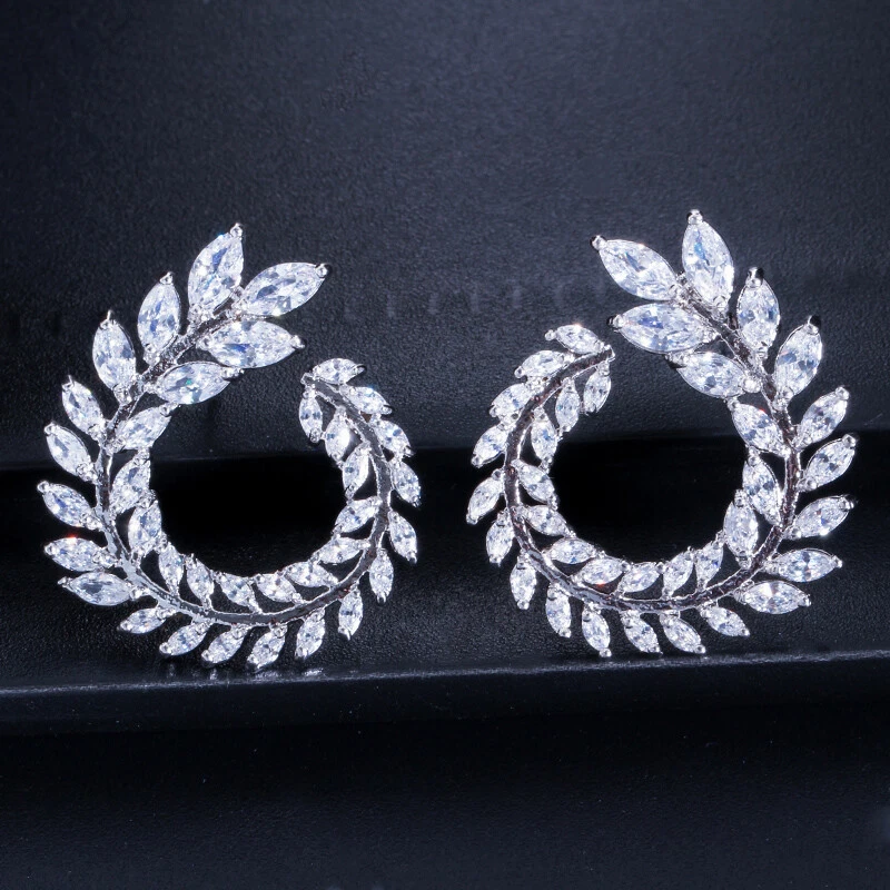 Main Stone: CZ Stone/ Crystal gtin13: Does not apply Material: Cubic Zirconia Secondary Stone: Cubic Zirconia Color: White Gift For: Girls , Women , Wife , Best Friends Metal: Silver Plated Style: Stud UPC: Does not apply Type: Earrings Brand: CWWZircons Item Type: Cubic Zirconia Stud Earrings for Women Features: Fashion, Elegant , Gorgeous Occasion: Daily, Dancing Party , Banquet Dinner Shape: Leaf Earring Size: 2.8 cm Base Metal: Copper Main Stone Color: White