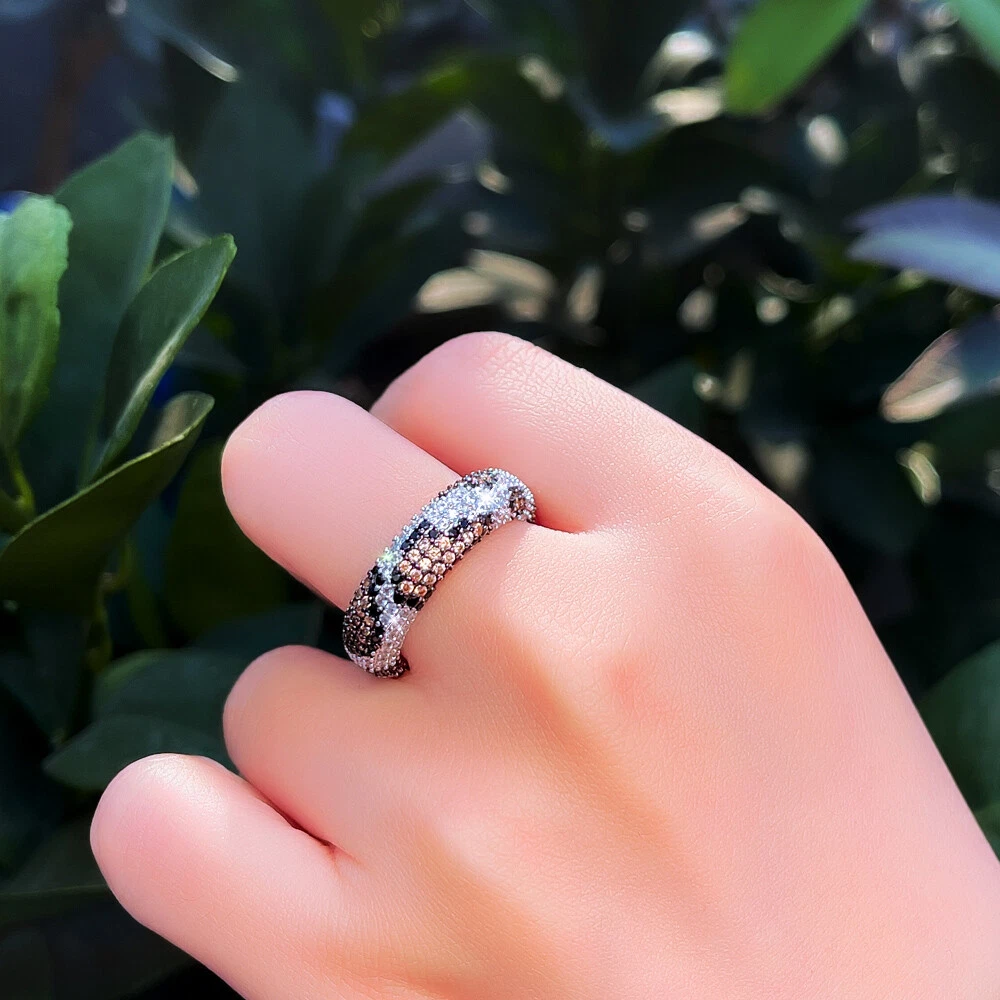 Silver Plated Cubic Zirconia Snake Leopard Bridal Ring for Women