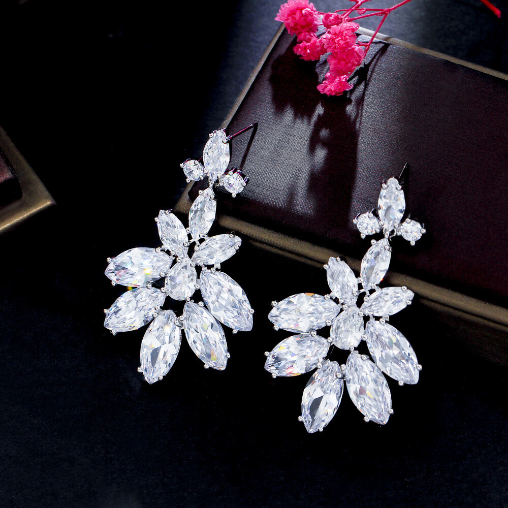 Country/Region of Manufacture: China Material: CZ Crystal Secondary Stone: Cubic Zirconia Type: Earrings Suitable for: Brides, Bridesmaids, Mother, Wife, Girfriend, Daughters gtin13: Does not apply Main Stone Color: White Main Stone Shape: Marquise Theme: Sparkling Zircon Crystal Leaf Long Dangle Big Wedding Earrings Base Metal: Brass Occasion: Anniversary, Birthday, Christmas, Engagement, Graduation, Mother's Day, Valentine's Day, Wedding Shape: Leaf Main Stone: Cubic Zirconia Features: Gorgeous, Chunky, Luxury Color: White Style: Dangle/Drop UPC: Does not apply Item Type: Women Silver Plated Sparkling CZ Crystal Leaf Long Drop Earrings Brand: Pera Cz Metal: Silver Plated Country of Origin: China Item Length: 5 cm