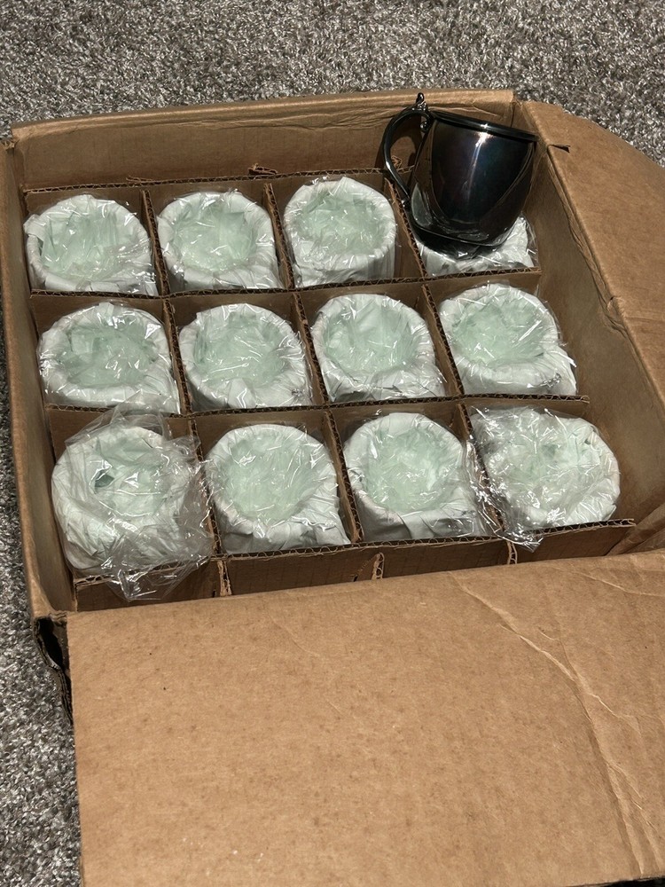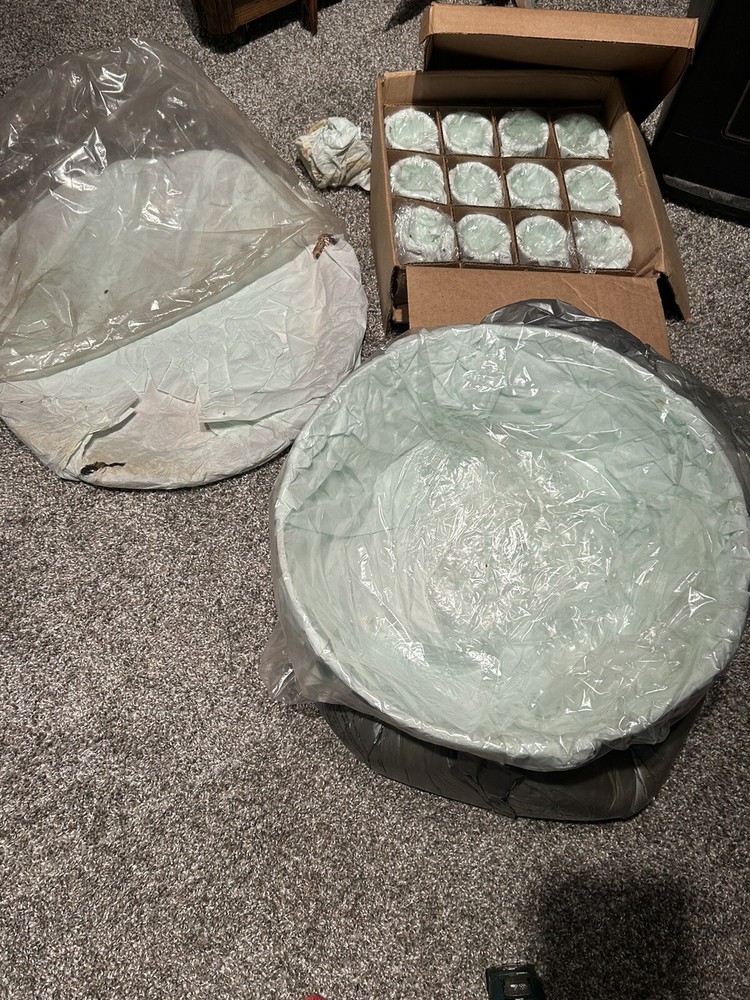 This set a punch bowl with the platter and 12 of the 13 cups are in mint condition is never been used. It was received from home interiors and gifts from using silver certificates to purchase it pre-2 000s.