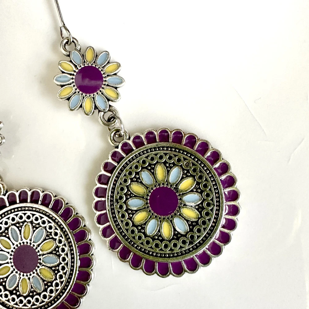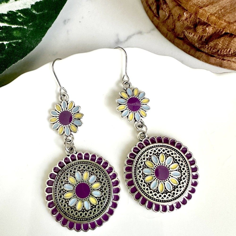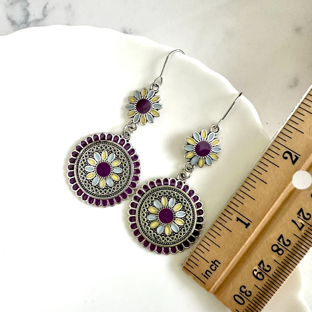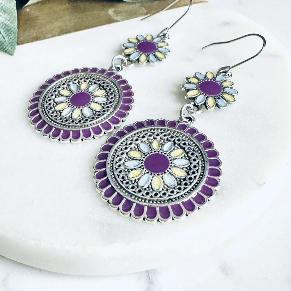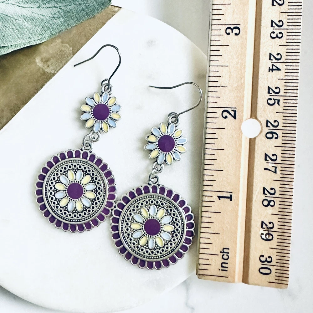 Silver Purple Floral Earrings Medallion Mandala Boho Disc Dangle Hippie Gift NEW US SELLER! 🌵Brand new 🌵See pictures for measurements! 🌵Zinc alloy material Even prettier in person, perfect for casual or special / formal occasions I love to bundle! Contact me for bundle pricing before purchase. Inventory Bin D Rhinestone Emily in Paris Anthropologie Zara Free People Bling bachelorette cruise honky tonk cute nature stud small dainty formal wedding birthday party gift Festival spring summer 2025 trends trendy casual statement Fashion Cocktail Jewel Chandelier Elegant Bohemian Boho Style Formal Long Dangle Pretty Hippie Fun Tropical Minimalist Coachella Costume Jewelry Unique Bauble Rustic Chic MCM vintage 1970’s 1980’s retro ornate botanical cottagecore Victorian inspired pinup rockabilly kawaii fairycore angelcore balletcore Y2K Royalcore Coquette fairy kei eclectic grunge goth Christmas stocking stuffer grandma southwestern rococo moody geo maximilism Valentine’s Day present holiday unique aesthetic celestial witchy concert Yellowstone western ranch country romantic comfortable femininity countryside cottagecore beachy quiet luxury nautical whimsical maximalist ethereal casual corporate tailored polished boho boho chic French inspired