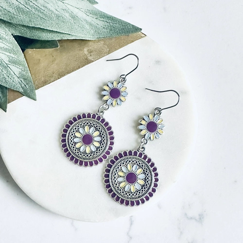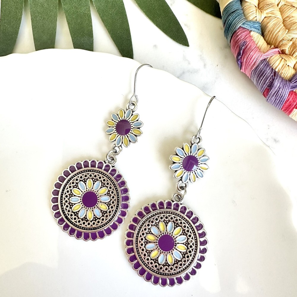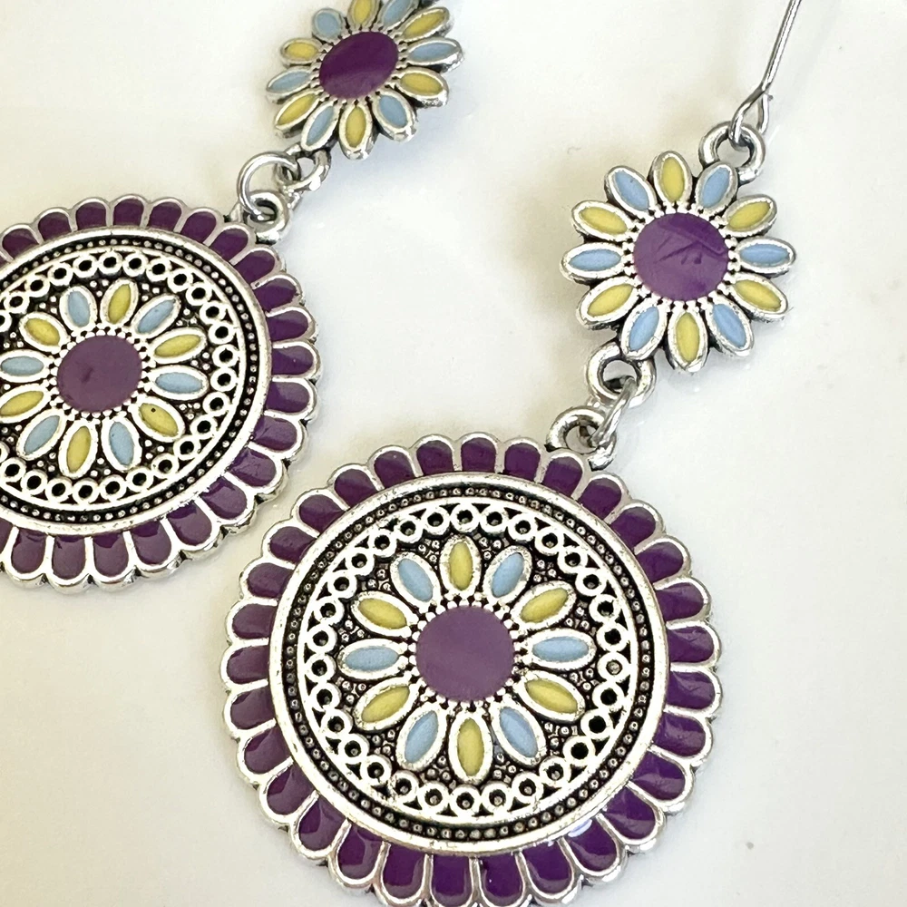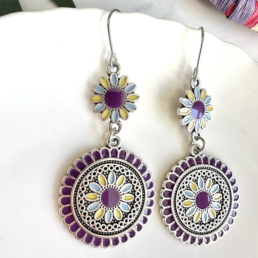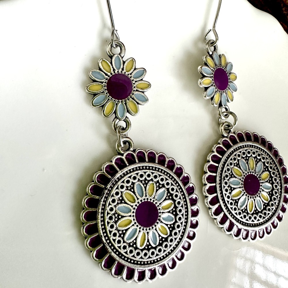 Silver Purple Floral Earrings Medallion Mandala Boho Disc Dangle Hippie Gift NEW US SELLER! 🌵Brand new 🌵See pictures for measurements! 🌵Zinc alloy material Even prettier in person, perfect for casual or special / formal occasions I love to bundle! Contact me for bundle pricing before purchase. Inventory Bin D Rhinestone Emily in Paris Anthropologie Zara Free People Bling bachelorette cruise honky tonk cute nature stud small dainty formal wedding birthday party gift Festival spring summer 2025 trends trendy casual statement Fashion Cocktail Jewel Chandelier Elegant Bohemian Boho Style Formal Long Dangle Pretty Hippie Fun Tropical Minimalist Coachella Costume Jewelry Unique Bauble Rustic Chic MCM vintage 1970’s 1980’s retro ornate botanical cottagecore Victorian inspired pinup rockabilly kawaii fairycore angelcore balletcore Y2K Royalcore Coquette fairy kei eclectic grunge goth Christmas stocking stuffer grandma southwestern rococo moody geo maximilism Valentine’s Day present holiday unique aesthetic celestial witchy concert Yellowstone western ranch country romantic comfortable femininity countryside cottagecore beachy quiet luxury nautical whimsical maximalist ethereal casual corporate tailored polished boho boho chic French inspired