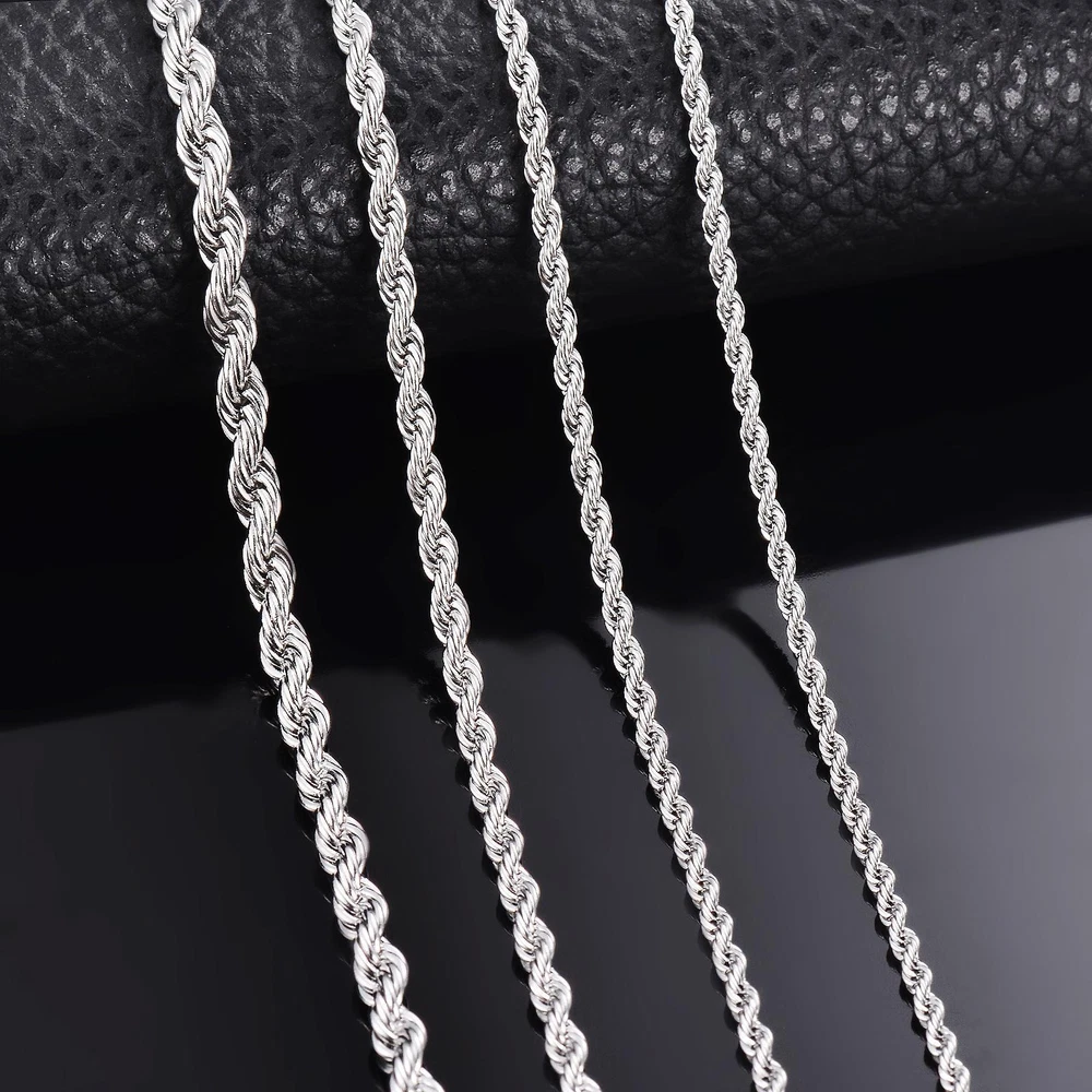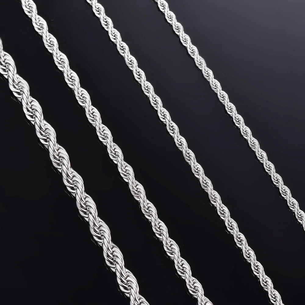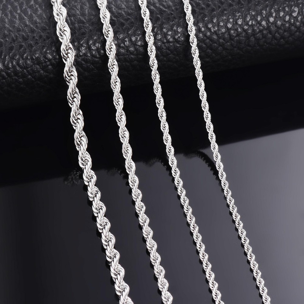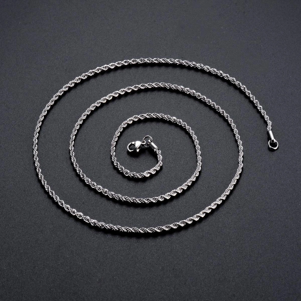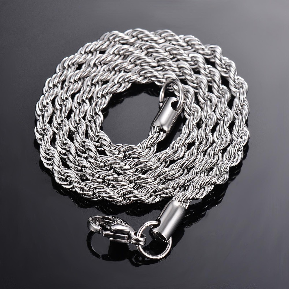 FREE SHIPPING 30 DAYS RETURN EASY PAYMENT Silver Color Rope Chain Necklace Rope Chain Fine Jewelry Pendant Material: Staineless SteelLink Chain(No fading, no allergy) Condition: 100% Brand New Color:Gold Color Customized length is available. REVIEWS The product came very well packaged. I'm very happy. thank you for everything. Seller strongly recommended. This is great! I definitely recommend! Product looks amazing Delivery was fast. Excellent seller, great communication. I advise everyone to buy it!