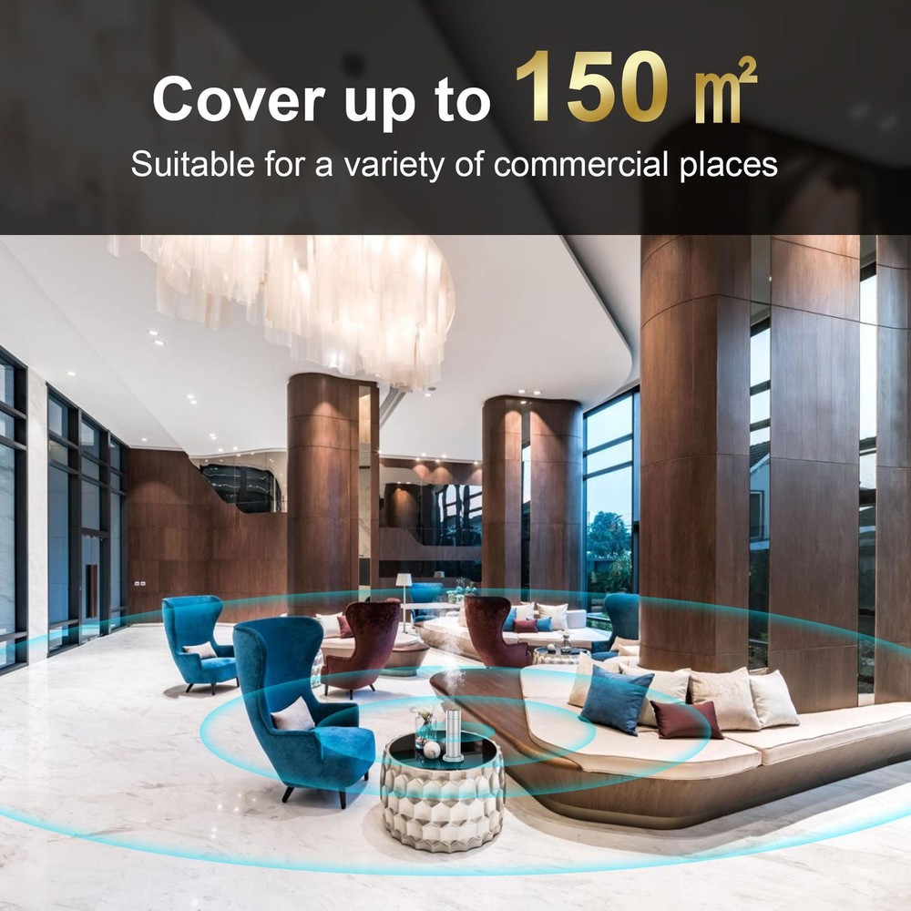 This sleek diffuser is a game-changer for any space! The powerful aroma fills up to 150m² effortlessly, creating a luxurious hotel-like vibe. Love the WiFi and Bluetooth control—so convenient. The durable metal build ensures it lasts, and the scent lingers beautifully all day. Perfect for upgrading your home or business ambiance with minimal effort. Highly recommend!