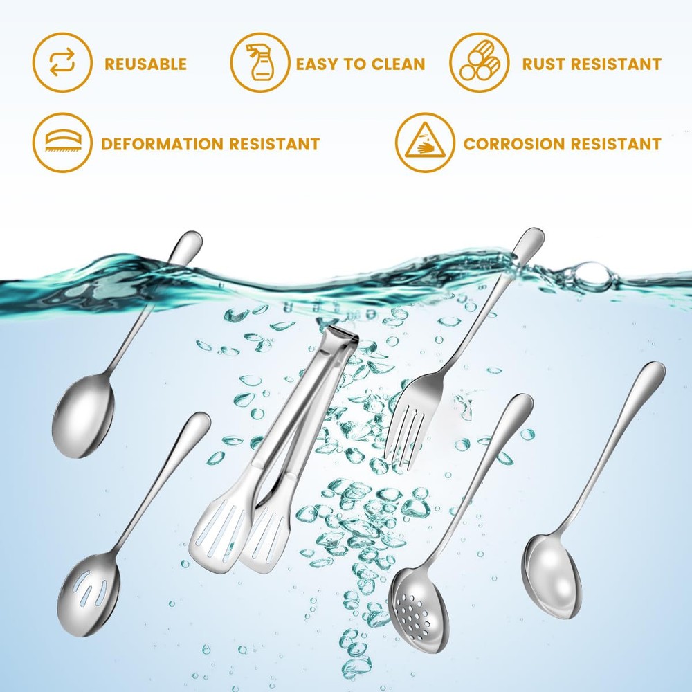Silver Stainless Steel Serving Utensils Set for Large Parties and Events