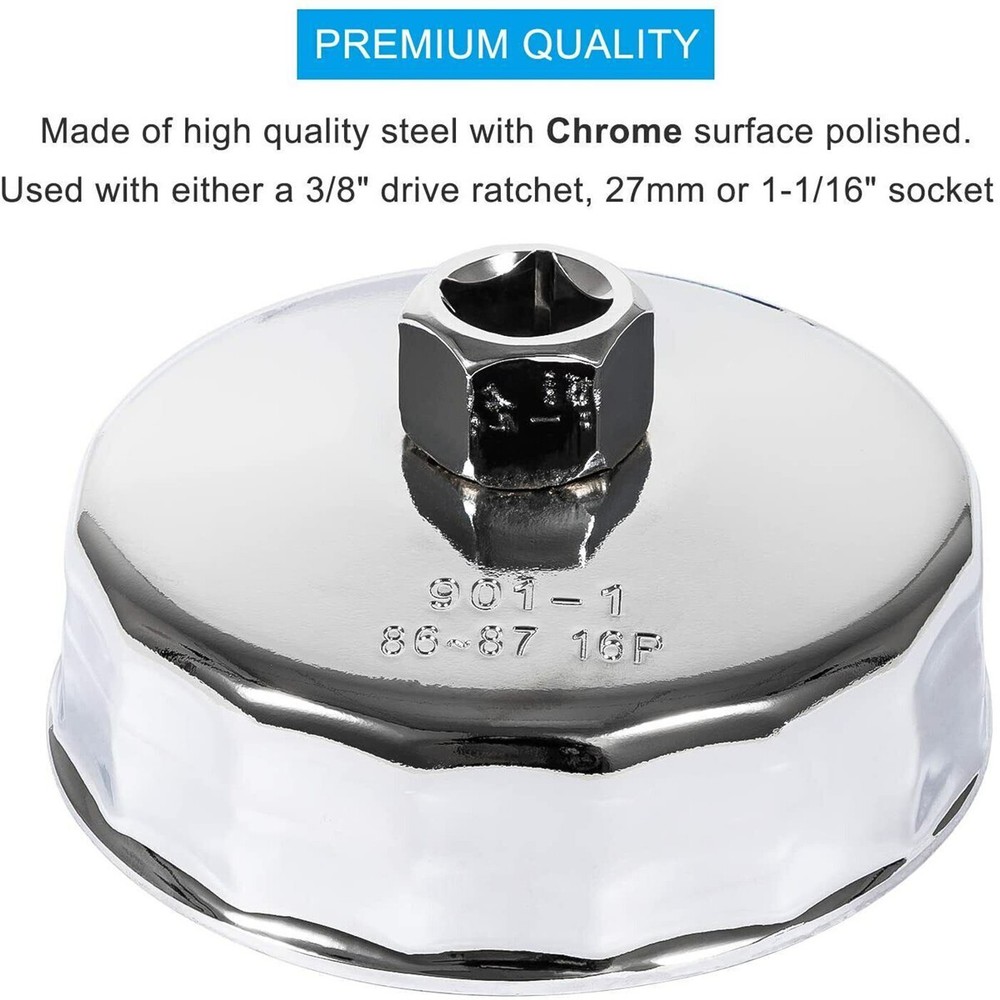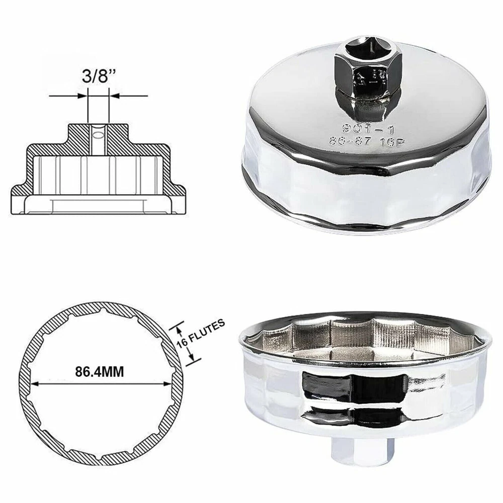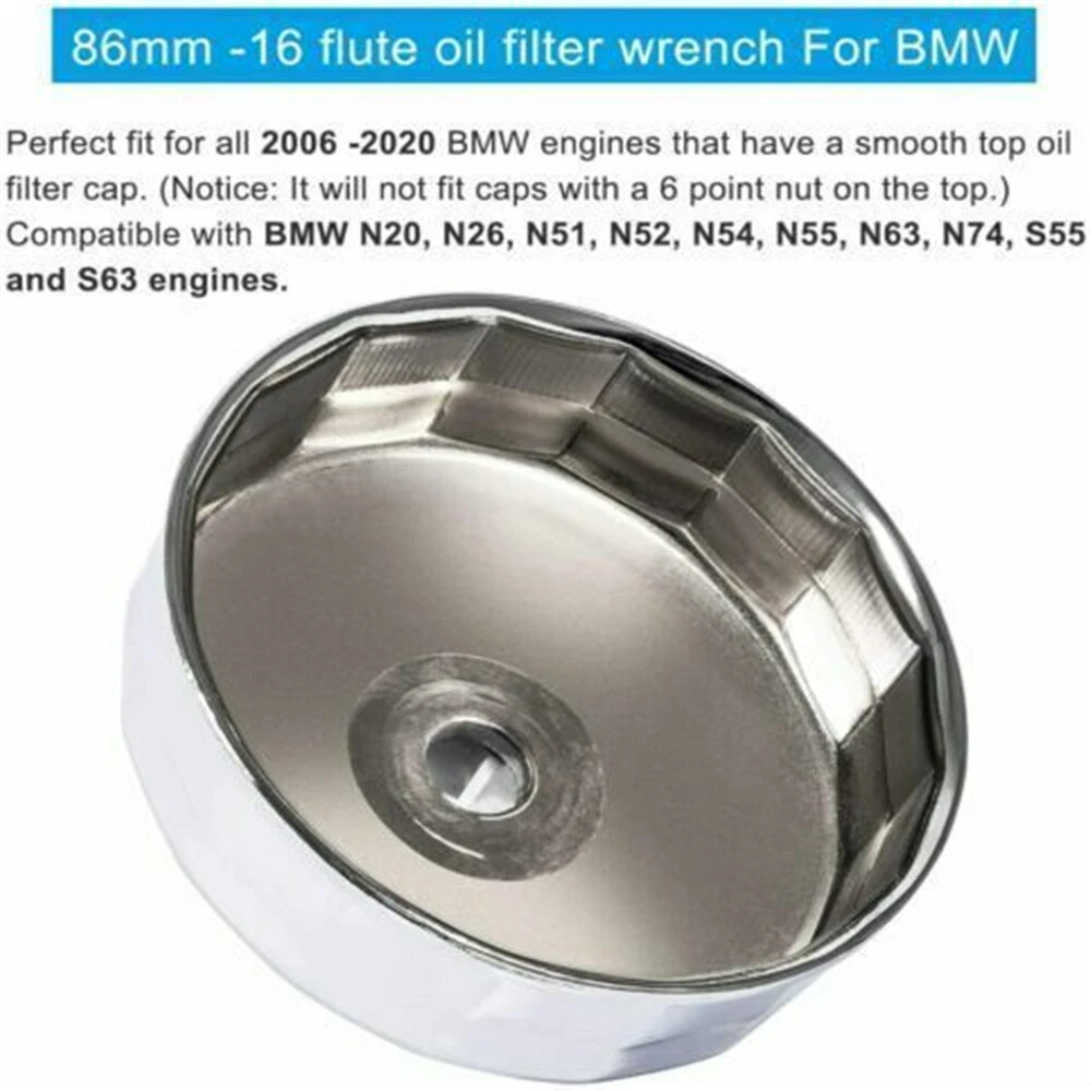 Silver Steel 86mm 16-Flute Oil Filter Wrench Cap Tool for BMW Volvo
