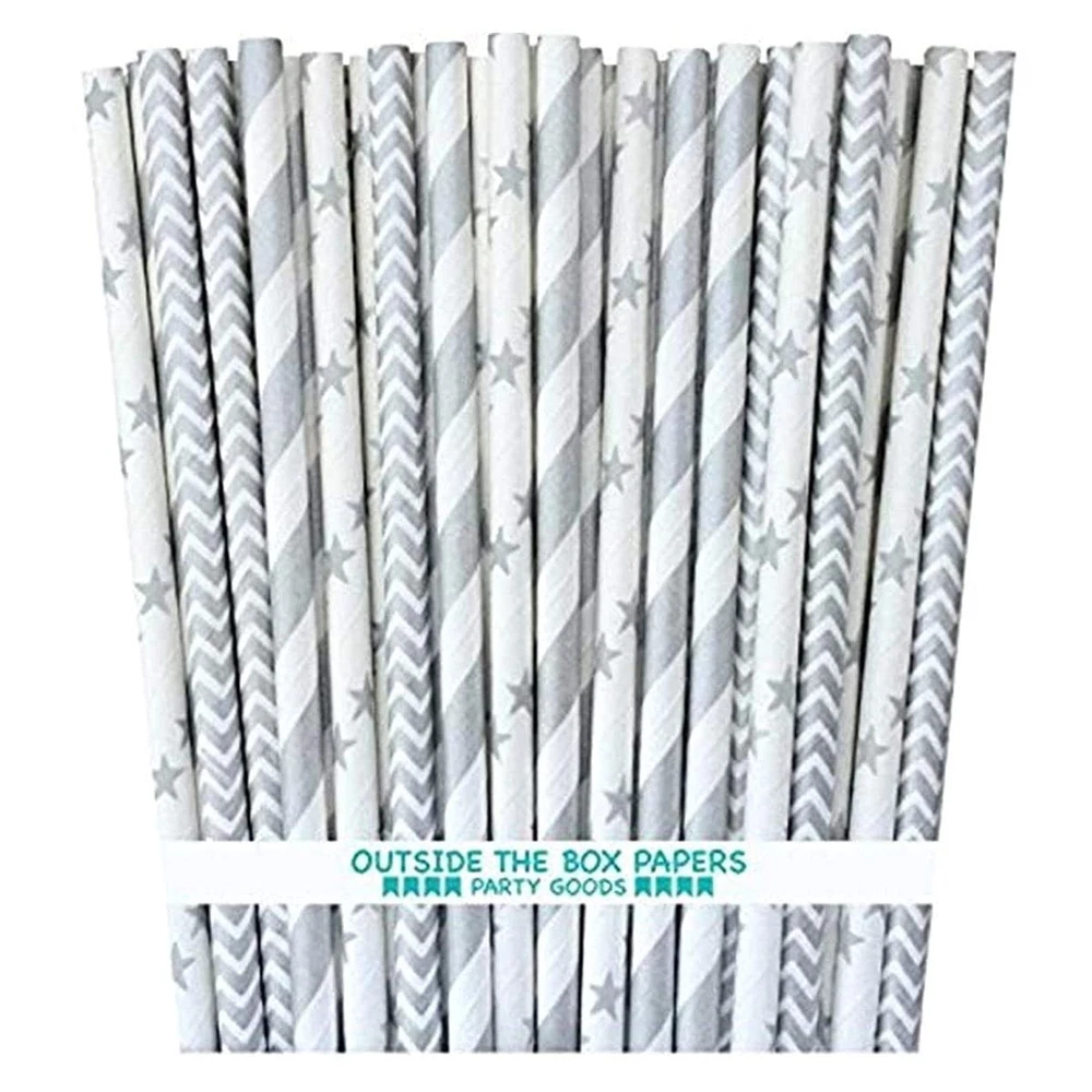 These silver and white paper straws are simply stunning, especially with the combination of patterns. stripe, chevron and stars. Your table with have instant elegance with a modern flair. These paper straws won't get soggy or fall apart. Each package contains 75 straws which measure 7.75" x .25 " in diameter. 7.75 inches x .25 inches in diameter Won't get soggy or fall apart 100% Biodegradable Perfect for birthdays, holidays, weddings and anniversaries Pack of 75 in 3 different patterns