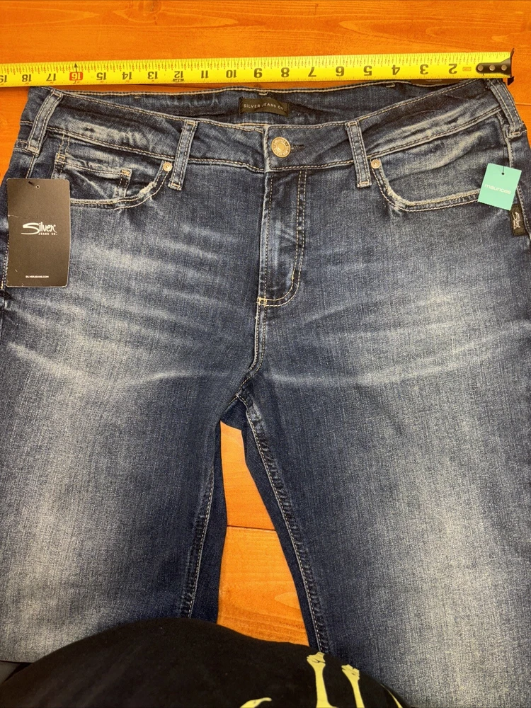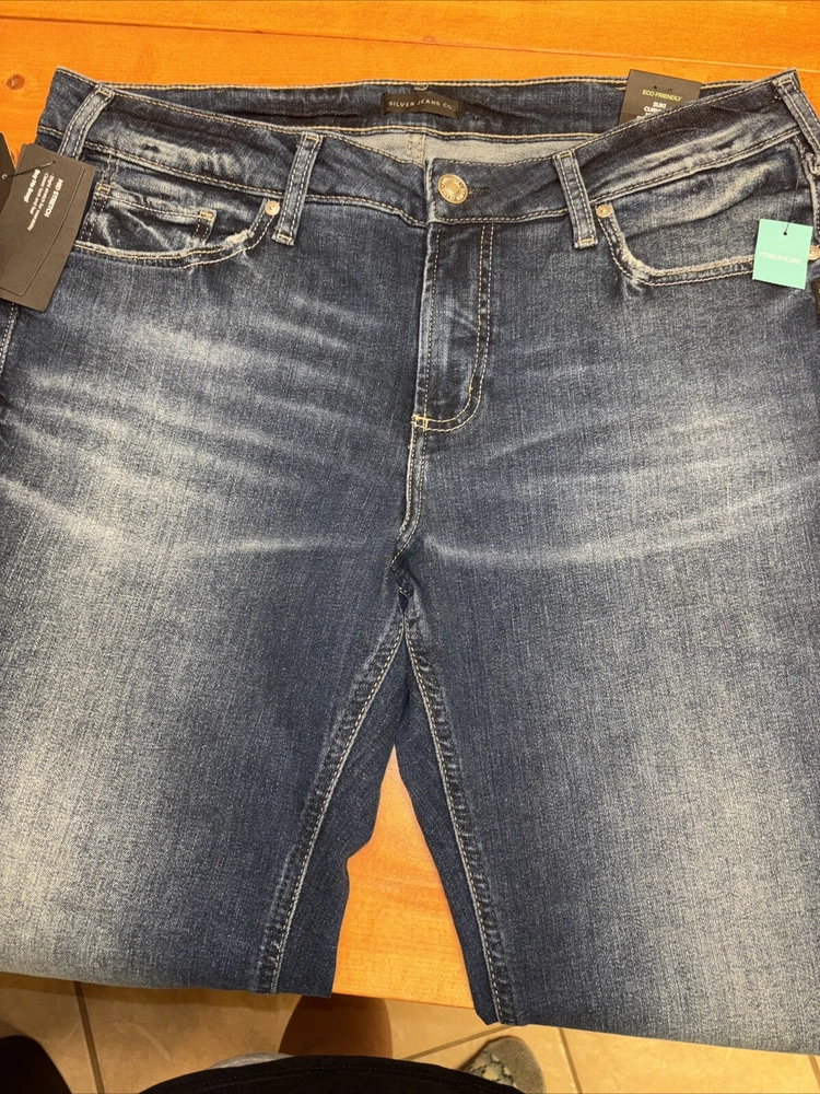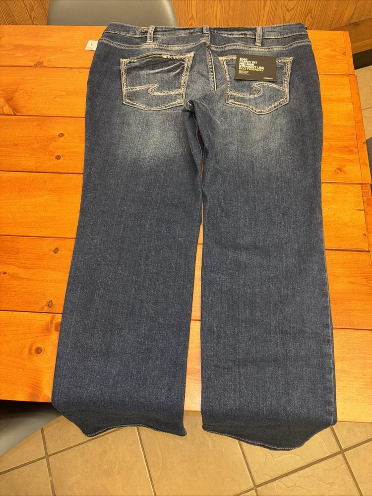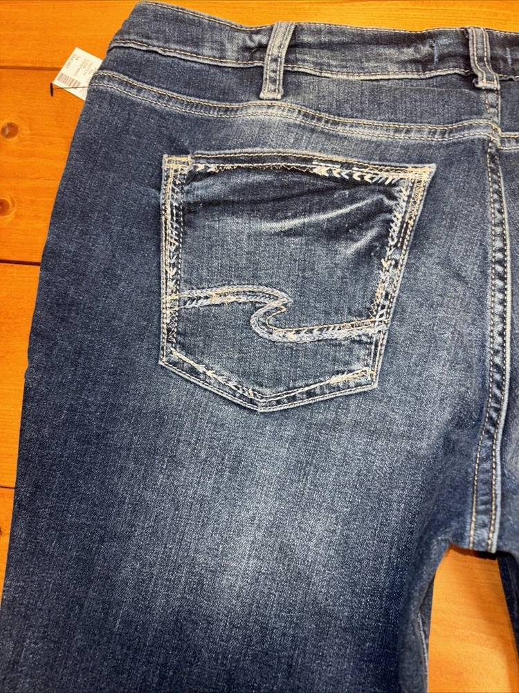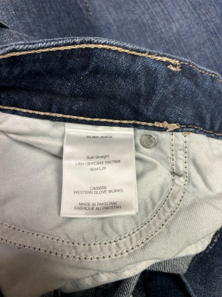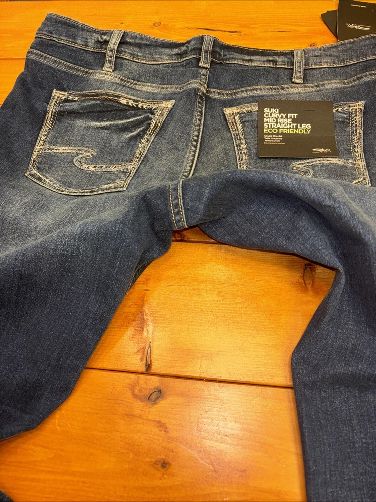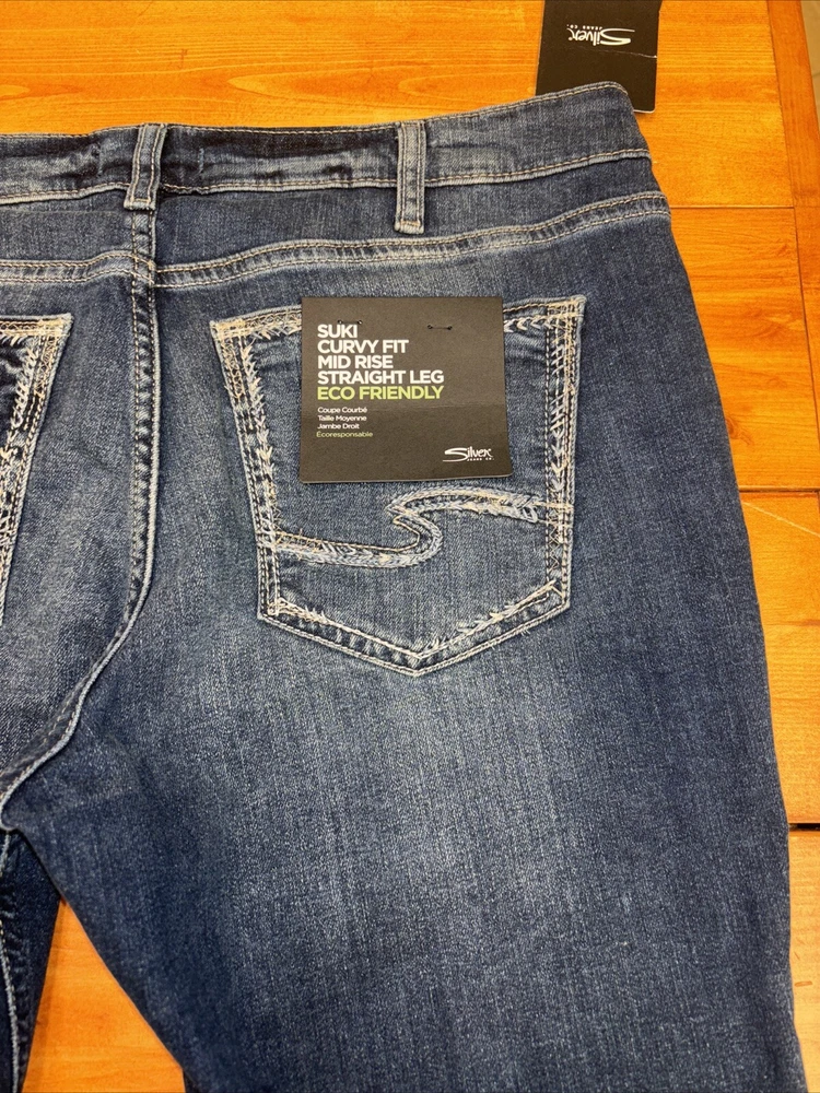Elevate your denim game with these stunning silver Suki jeans from Maurices. Crafted with a curvy fit and mid-rise waistline, these jeans are perfect for any occasion. The straight leg design and W34 L29 size ensure a comfortable and flattering fit for any body type. Featuring a sleek metal theme, these jeans are perfect for anyone looking to add some edge to their wardrobe. The high-quality fabric and attention to detail ensure that these jeans will last for years to come. Don't miss out on this must-have addition to your clothing collection.