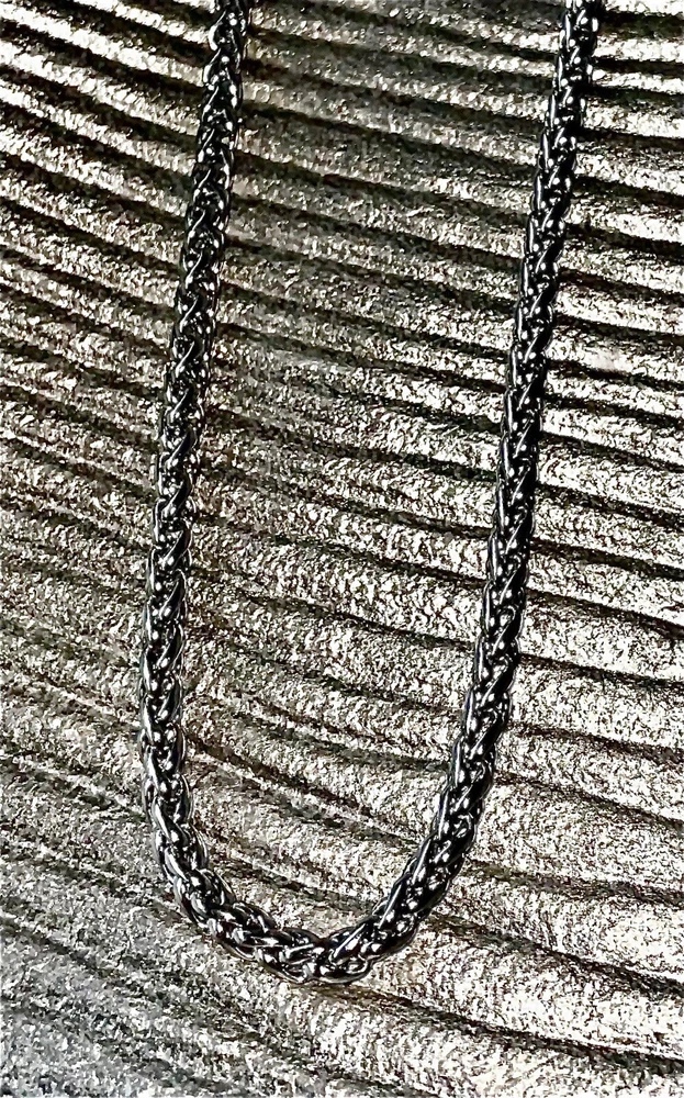 Up for auction is a 5mm thick & 20” Titanium silver steel rope chain necklace & bracelet with lobster clasps set. Both men & women can wear it for most occasions. Easy to keep clean & polished, Titanium can last a lifetime with minimal care & has the highest strength-to-weight ratio of any metal. Titanium is also hypoallergenic & won't tarnish or corrode when exposed to air, water, sweat, or skin! Comes with a maintenance cloth & a gift box for easy gifting &/or storage!