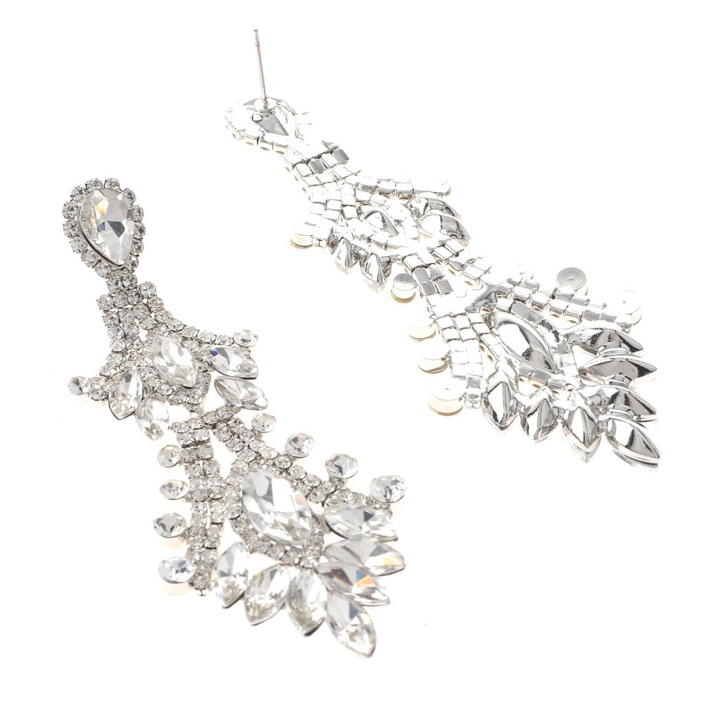 Silver Tone Metal Crystal Rhinestone Drop Post Earrings / Approximate Size: 3.35" L x 1.25" W / Rhinestone / Metal / Lead & Nickel Compliant / Color: Silver & Clear Condition: Brand New SKU: ESE7880-SCL Color: Clear Design: All orders will ship from USA via UPS or USPS. We expect all local orders will receive the items within 7 business days or less depend the location. Worry free international shipment delay or custom duty fee.