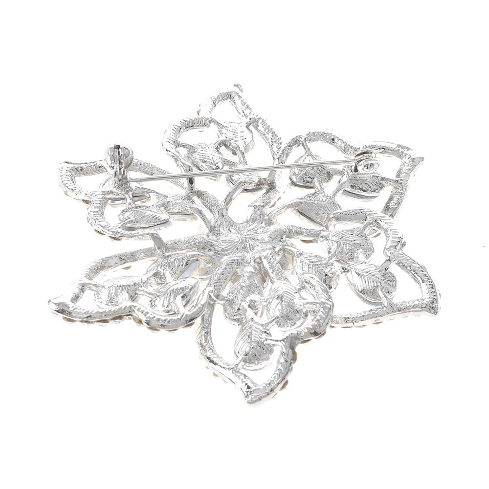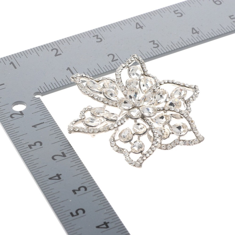 Silver Tone Metal Crystal Rhinestone Flower Brooch P1514-SCL