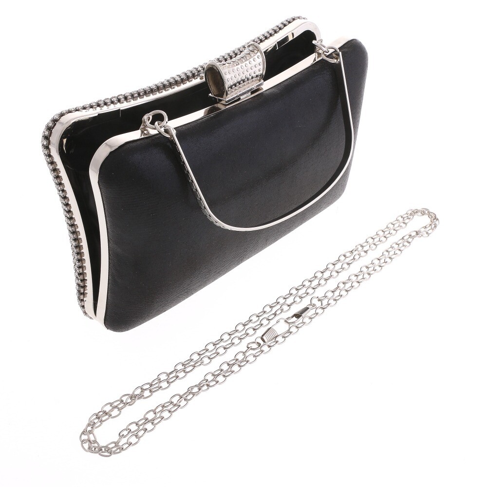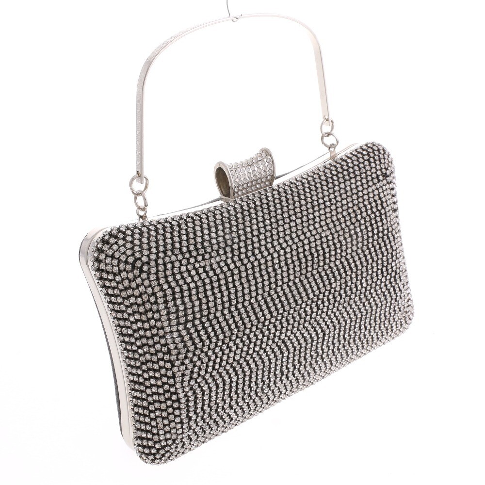 Silver Tone Metal Handle Rhinestone Black Clutch Evening Bag / Long Chain Strap / Approximate Size: 7.5"L x 4.5"H (Handle Not included) x 2"W / Color: Silver & Black ** color of the picture may vary due to lighting ** Condition: Brand New SKU: TLX156-BLK Color: Black Design: All orders will ship from USA via UPS or USPS. We expect all local orders will receive the items within 7 business days or less depend the location. Worry free international shipment delay or custom duty fee.