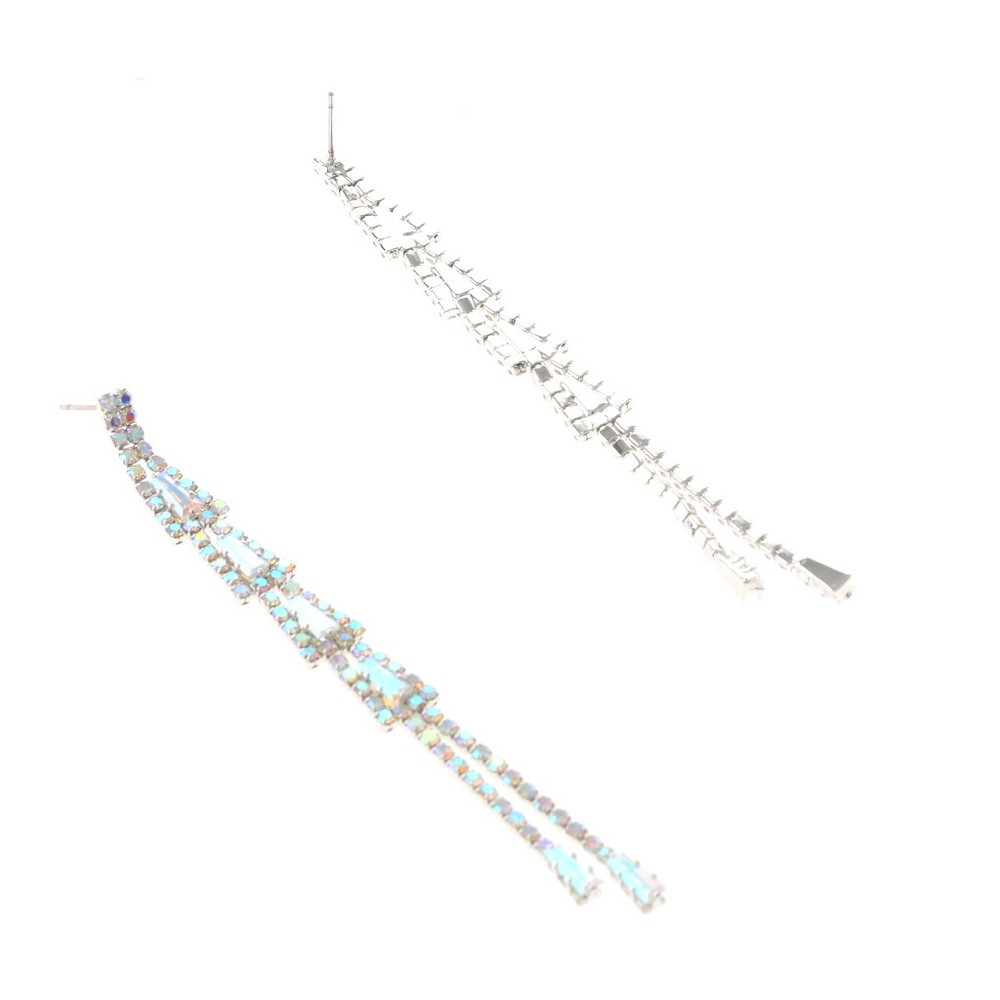 Silver Tone Metal Rhinestone Dangle Post Earrings / Cubic Zirconia / Approximate Size: 3.75" L x 0.35" W / Rhinestone / Metal / Lead & Nickel Compliant / Color: Silver & AB Condition: Brand New SKU: ESE1867-SAB Color: AB Design: All orders will ship from USA via UPS or USPS. We expect all local orders will receive the items within 7 business days or less depend the location. Worry free international shipment delay or custom duty fee.