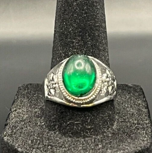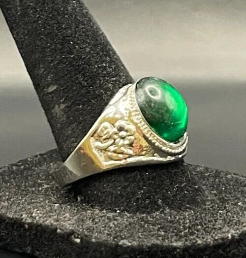 Secondary Stone: No Stone Setting Style: Solitaire Vintage: Yes Color: Silver Band Width: Unknown Brand: Unbranded Metal Purity: Unknown Cut Grade: Excellent Features: Engraved, Nickel-Free Main Stone Width: Unknown Metal: Stainless Steel Sizable: No Style: Band, Cocktail Base Metal: Stainless Steel Signed: No Main Stone: Crystal Number of Gemstones: Unknown Main Stone Shape: Brilliant Cut UPC: Does not apply Ring Size: 8.5 Main Stone Color: Green Occasion: Anniversary, Birthday, Christmas, Father's Day, Graduation Country/Region of Manufacture: China Type: Ring Main Stone Creation: Unknown Handmade: No Customized: No Era: Undated Shape: Asymmetrical Main Stone Depth: Unknown Main Stone Length: Unknown Modified Item: No Gemstone Clarity Grade: Unknown Antique: Yes gtin13: Does not apply Theme: Biker Seller Warranty: No Personalize: No Wholesale: No Material: Rhinestone, Unknown Country of Origin: Unknown