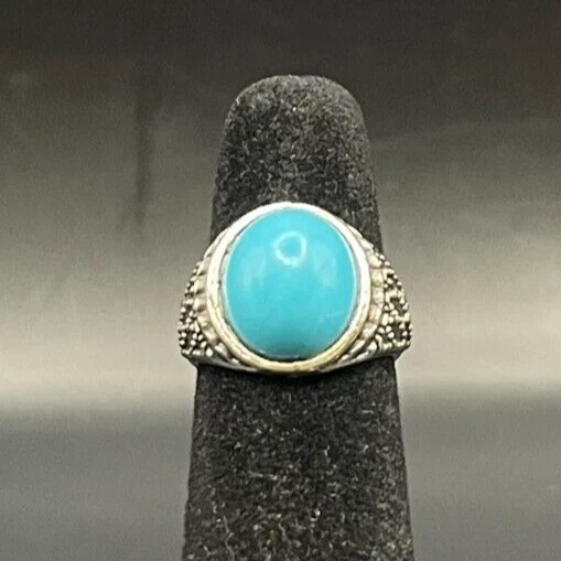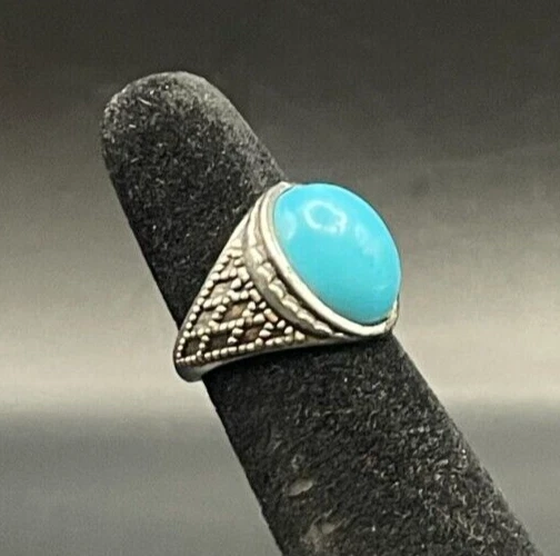 Silver Tone Rhinestone Turquoise Color Southwestern Ring - Size 2.5
