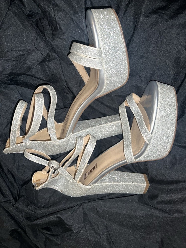 These silver glitter platform courts are the perfect choice for a glamorous prom look. The glitter accents add a touch of sparkle, making them a fun and eye-catching option for any special occasion. The platform style provides added height and comfort, while the heel gives a flattering lift. Perfect for adding a touch of metallic shine to your outfit, these #glitterheels are sure to make a statement and turn heads at any event.