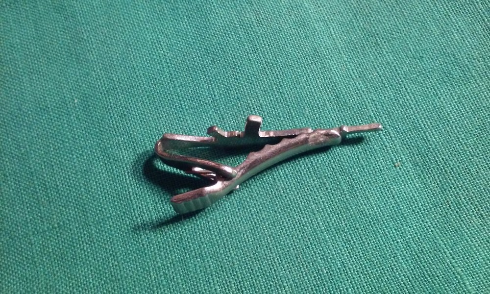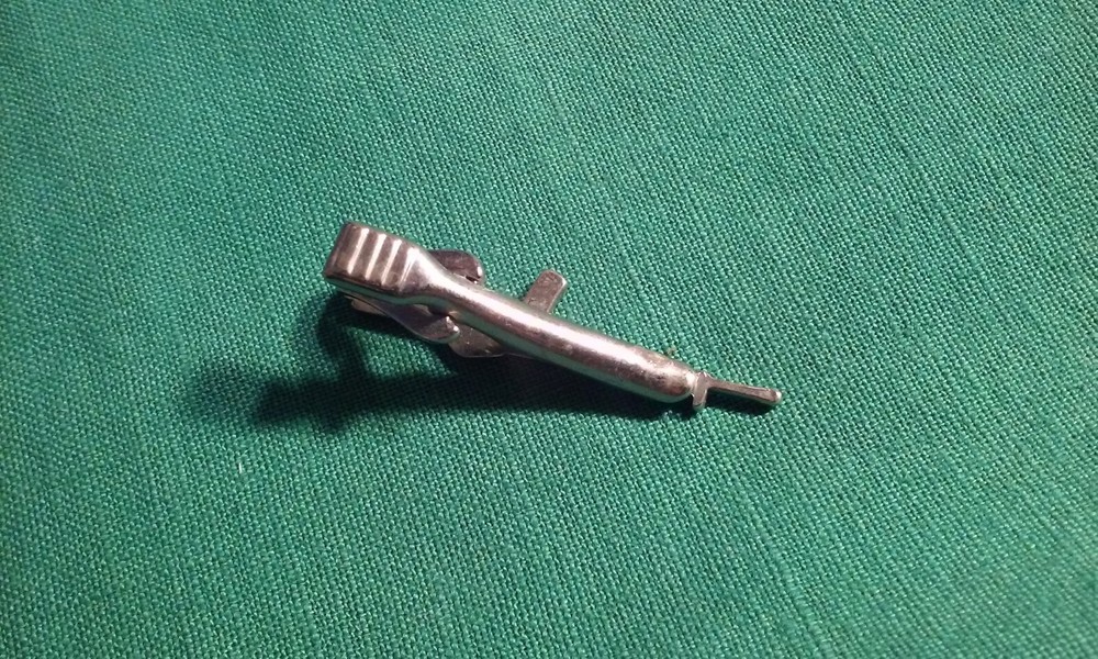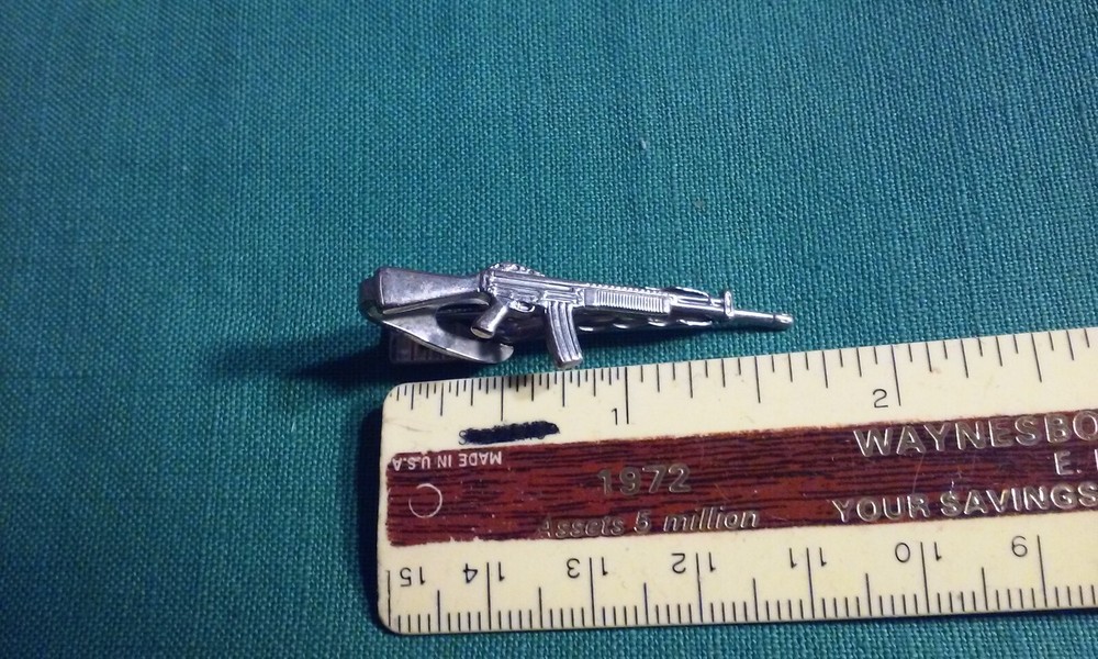 AK-47 Figural Military Theme Novelty Gun Rifle Tie Clip Clasp Silver -Tone Metal.