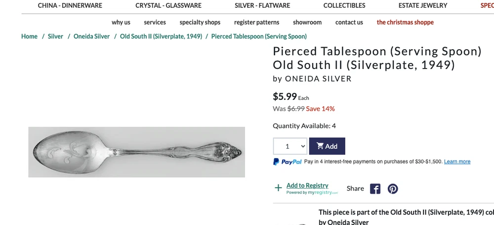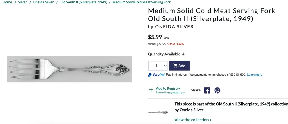 Type:Salad ServersFeatured Refinements:Set of Antique Silver Plated FlatwareComposition:SilverplatePattern:Old South IISeller Notes:“Very Good Used Condition”Brand:ONEIDA