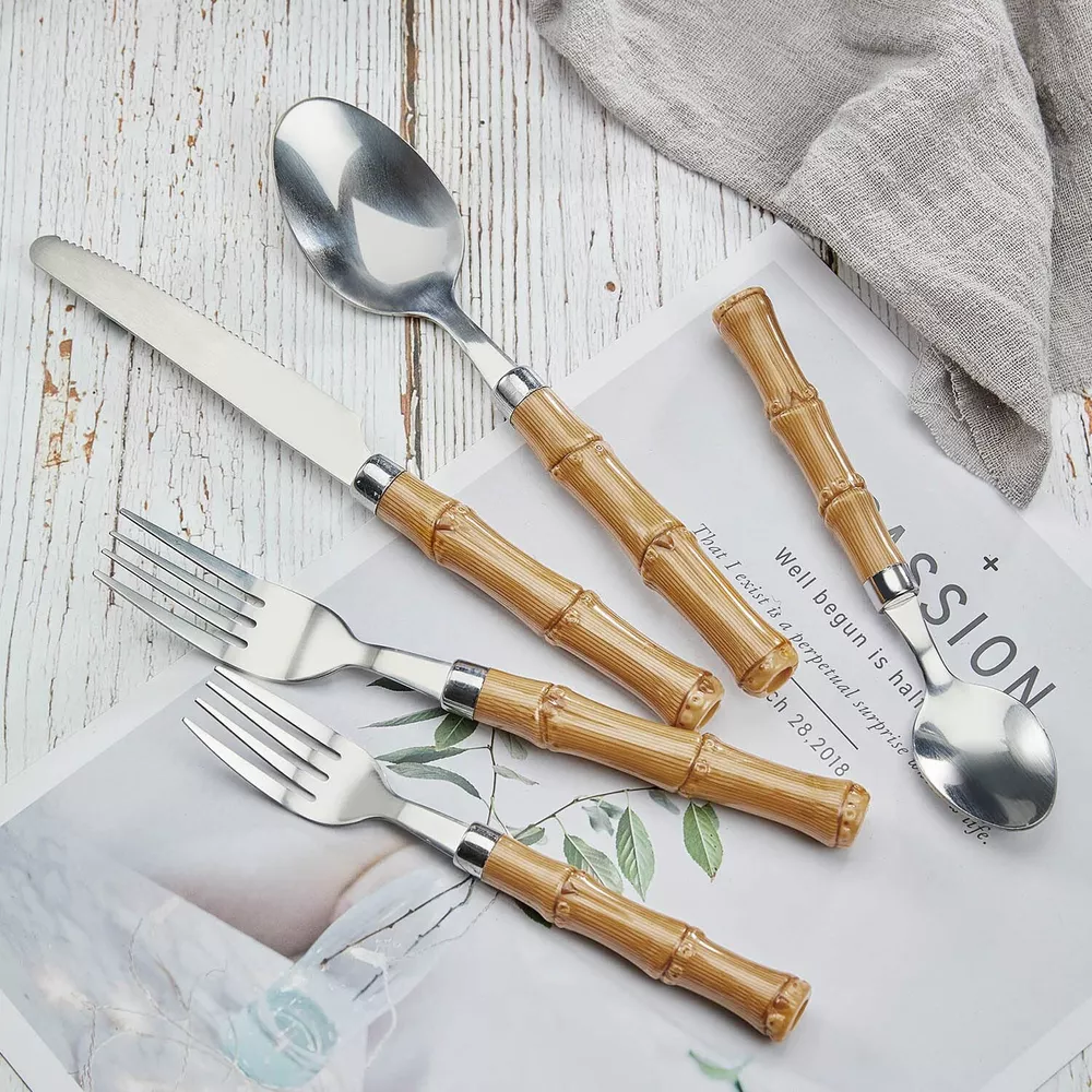 A set of plastic handle silverware set you need in basic everyday: *Made of 18/0 stainless steel that provide long-lasting performance and holds up to frequent washing. *The unique color upgrade the class of your table and suitable for different occasion. *Perfect for daily use, gathering, party, camping, barbecue, restaurant, hotel, wedding or more. *Also great gift for friends and relatives.What Included: 4 x Dinner Forks(7.46'') 4 x Salad Forks(6.2'') 4 x Tablespoons(7.46'') 4 x Teaspoons(6'') 4 x Knives(8.1'') Using Instruction:1. Please clean it with soap water for your first using and wash off any residue left from the manufacturing.2. Please clean and dry the flatware set well after use, and in a dry place for durability.3. Please do not wash it with wire brush or strong to avoid scratch.4. Please enjoy these luxury silverware set with your healthy daily meal.Guaranteed Satisfaction:Hoften committed to provide 12 months and friendly to our clients.Hoften is a flatware set expert, who provides you durable product and reliable service. Silverware - 4 Dinner Forks(7.46''), 4 Tablespoons(7.46''), 4 Knives(8.1''), 4 Dessert Forks(6.2'') and 4 Teaspoons(6''). This utensil is great for family dinners and parties Unique Design Utensils - Unique plastic handle will be your favour if you love natural and environment. Professional 18/0 stainless steel ensuring rust and corrosion resistant. Ideal for causal meals as well as formal dinners, adding a sense of class to make your meal more special Flatware Perfect For Gift Giving - As a wonderful gift for weddings birthdays house warming engagements Mother's Day Father's Day Valentine's Day and more. Flatware separately wrapped in plastic sleeves to prevent damage from scratching, and packaged in a gift box Great Hand Feel - Featuring classic curves, heavy-weight heft and exceptional balance. The handles are smooth, tactile and comfortable, making each utensil a pleasure to hold. Sturdy & Long Lasting Stainless Steel Silverware with Plastic Handle - These silverware are made of premium stainless steel which ensures your , sturdy enough for basic daily use, rust resistant and durable for years to come.