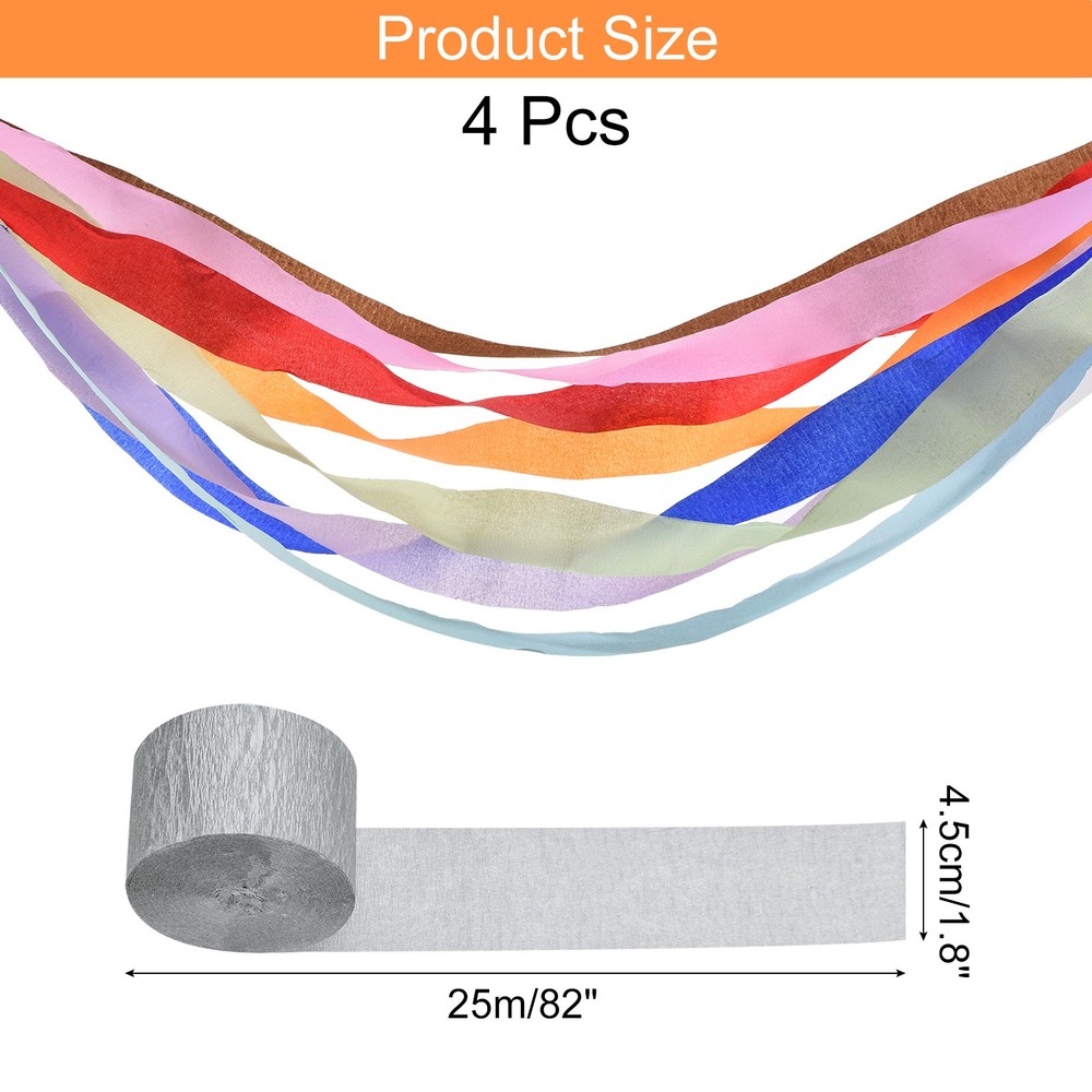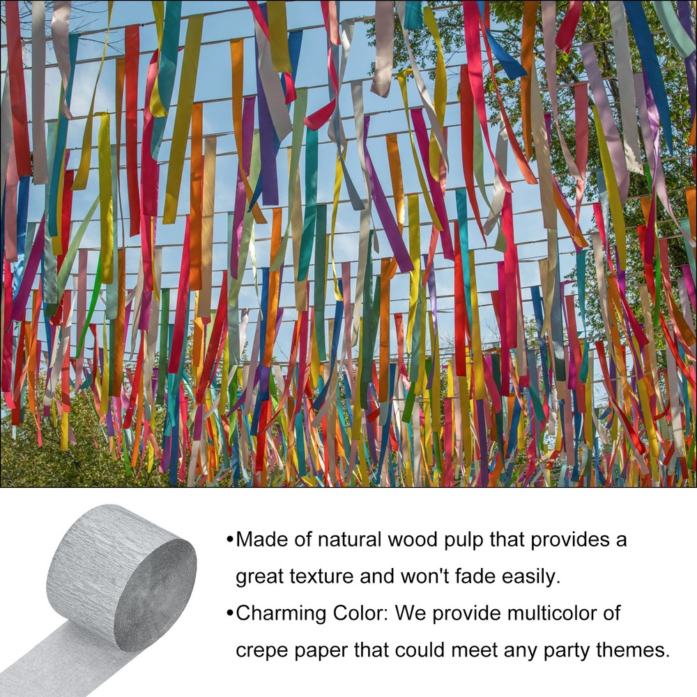 Document About the product:Crepe paper streamers are a versatile party decoration that can add a touch of color to any decorative party, including birthday parties, weddings, Christmas, classrooms, office graduation celebrations and more.Good choice for you:Material:Crepe Paper Streamer Rolls are made from wood pulp for a natural textured effect that won't fade easily, our party streamers are designed for easy hanging and clean removal, perfect for any venue.Durability:Each roll of Birthday streamers is carefully crafted and durable, can be reused for multiple events, and can make your party more eye-catching when decorating.Diverse Color: We offer a variety of colors or styles of cream paper streamers to choose from. You can choose the color you want, or mix and match different colors to meet your party theme needs.Specification:Streamers Party DecorationsColor: SilveryMaterial: Paper PulpSize: 4.5 cm x 25 m / 1.8 Inch x 82 Ft (W x L)In the package of: 4 Roll x Crepe Paper StreamerEasy to use:You can simply hang Crepe Paper Streamers on the ceiling, doorway, window or twist the paper streamers together to form a spiral shape as a background for party celebrations, you can also use them to make tissue flowers, paper pompoms or tear them into pieces as confetti to decorate your birthday party. You can use your imagination to create your own style and create a romantic atmosphere.Tips: Please confirm the correct size before ordering. Silvery Paper Streamers - 1.8 Inch x 82 Feet / 4 Roll About the product: Crepe paper streamers are a versatile party decoration that can add a touch of color to any decorative party, including birthday parties, weddings, Christmas, classrooms, office graduation celebrations and more. Good choice for you: Material:Crepe Paper Streamer Rolls are made from wood pulp for a natural textured effect that won't fade easily, our party streamers are designed for easy hanging and clean removal, perfect for any venue. Durability:Each roll of Birthday streamers is carefully crafted and durable, can be reused for multiple events, and can make your party more eye-catching when decorating. Diverse Color: We offer a variety of colors or styles of cream paper streamers to choose from. You can choose the color you want, or mix and match different colors to meet your party theme needs. Specification: Streamers Party Decorations Color: Silvery Material: Paper Pulp Size: 4.5 cm x 25 m / 1.8 Inch x 82 Ft (W x L) In the package of: 4 Roll x Crepe Paper Streamer Easy to use: You can simply hang Crepe Paper Streamers on the ceiling, doorway, window or twist the paper streamers together to form a spiral shape as a background for party celebrations, you can also use them to make tissue flowers, paper pompoms or tear them into pieces as confetti to decorate your birthday party. You can use your imagination to create your own style and create a romantic atmosphere. Tips: Please confirm the correct size before ordering. Hot Item Payment 1.We accept eBay payment . 2.Payment must be received within 7 business days of auction closing. Shipping 1.We ship to your eBay or Paypal address. Please make sure your eBay and Paypal address is correct before you pay. 2.Items will be shipped within 1-3 business day when we received payment. 3.Delivery time depends on destination and other factors. Description Policy Silvery Paper Streamers - 1.8 Inch x 82 Feet / 4 Roll About the product: Crepe paper streamers are a versatile party decoration that can add a touch of color to any decorative party, including birthday parties, weddings, Christmas, classrooms, office graduation celebrations and more. Good choice for you: Material:Crepe Paper Streamer Rolls are made from wood pulp for a natural textured effect that won't fade easily, our party streamers are designed for easy hanging and clean removal, perfect for any venue. Durability:Each roll of Birthday streamers is carefully crafted and durable, can be reused for multiple events, and can make your party more eye-catching when decorating. Diverse Color: We offer a variety of colors or styles of cream paper streamers to choose from. You can choose the color you want, or mix and match different colors to meet your party theme needs. Specification: Streamers Party Decorations Color: Silvery Material: Paper Pulp Size: 4.5 cm x 25 m / 1.8 Inch x 82 Ft (W x L) In the package of: 4 Roll x Crepe Paper Streamer Easy to use: You can simply hang Crepe Paper Streamers on the ceiling, doorway, window or twist the paper streamers together to form a spiral shape as a background for party celebrations, you can also use them to make tissue flowers, paper pompoms or tear them into pieces as confetti to decorate your birthday party. You can use your imagination to create your own style and create a romantic atmosphere. Tips: Please confirm the correct size before ordering. Hot Item Payment 1.We accept eBay payment . 2.Payment must be received within 7 business days of auction closing. Shipping 1.We ship to your eBay or Paypal address. Please make sure your eBay and Paypal address is correct before you pay. 2.Items will be shipped within 1-3 business day when we received payment. 3.Delivery time depends on destination and other factors.