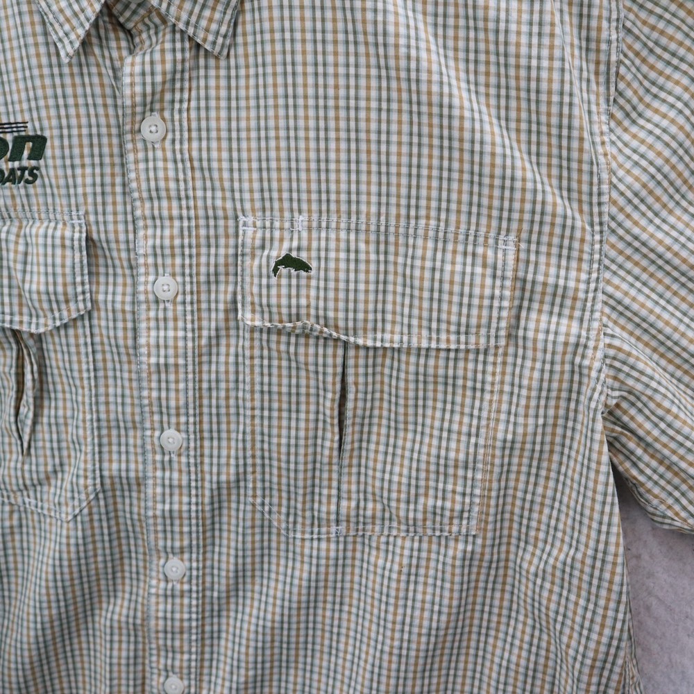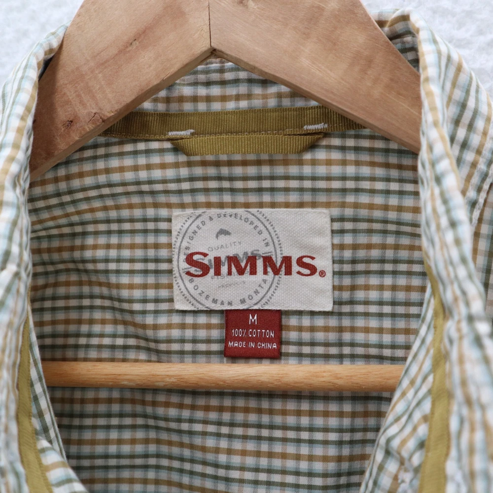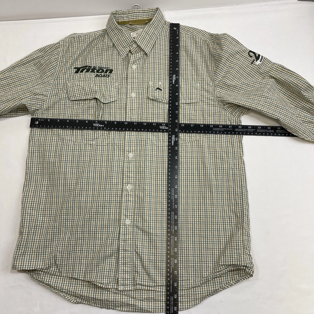 Simms Shirt Mens Medium Green & White Plaid Fishing Hiking Gorpcore Triton Boats This item is in pre-owned condition and therefore may show signs of previous use, such as small stains, holes, or other wear. Please view all of the items photos as any defects will be documented there. Measurements can be seen in the photos.