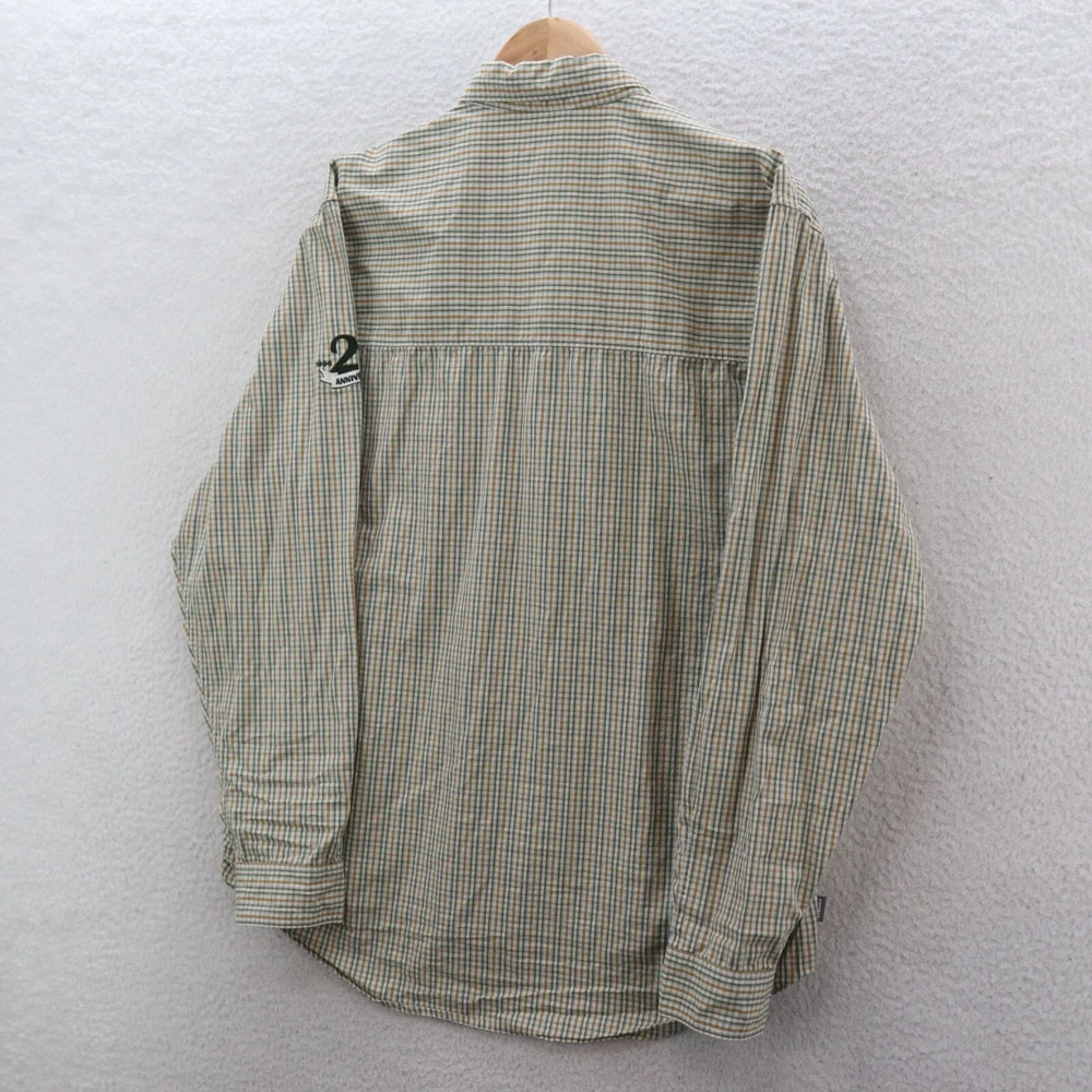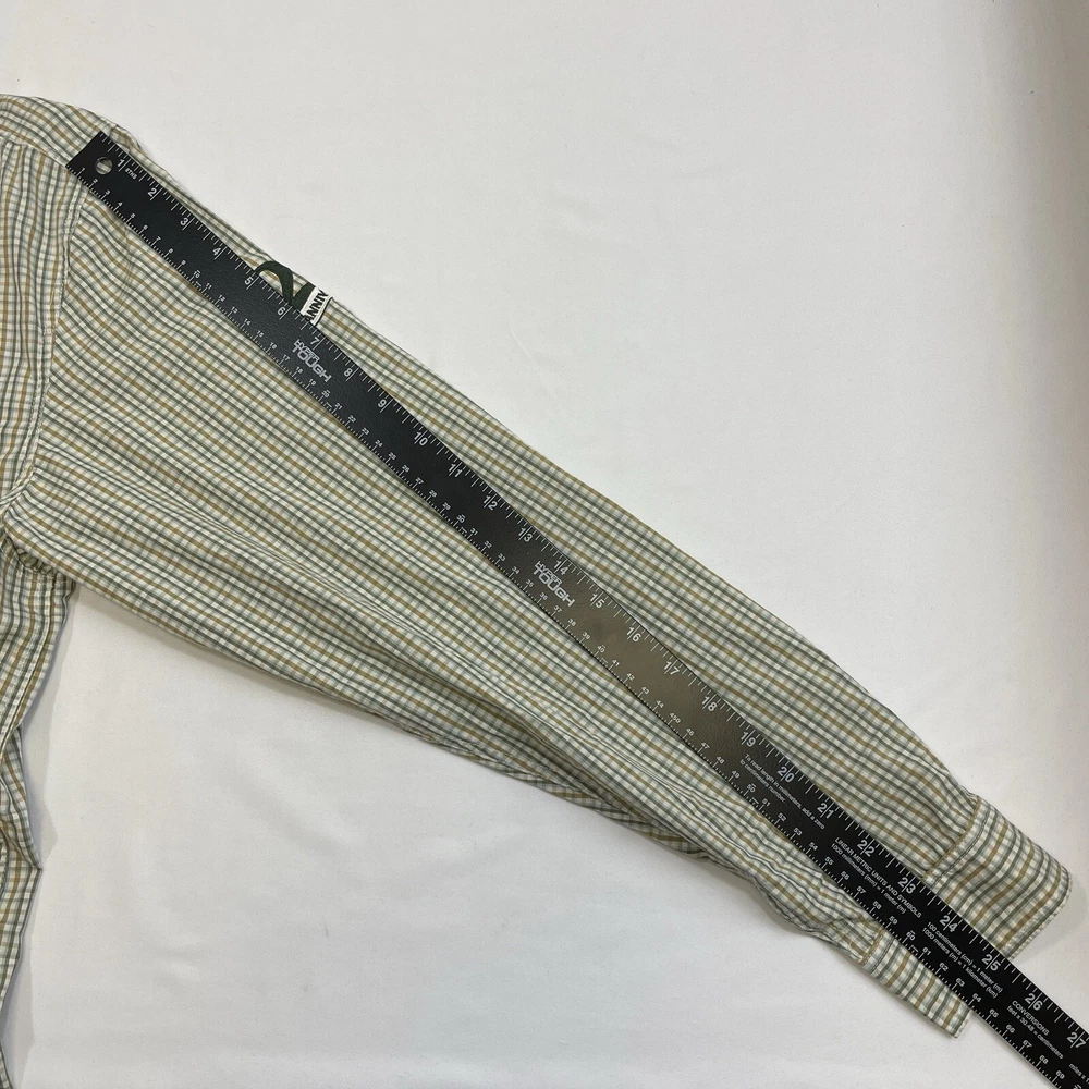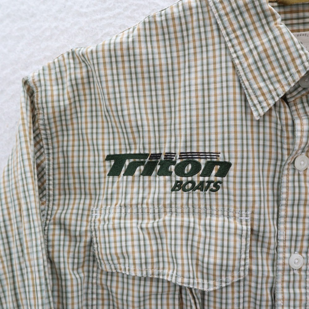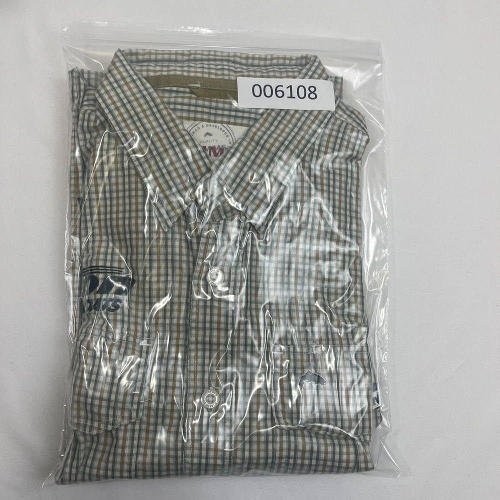 Simms Shirt Mens Medium Green & White Plaid Fishing Hiking Gorpcore Triton Boats This item is in pre-owned condition and therefore may show signs of previous use, such as small stains, holes, or other wear. Please view all of the items photos as any defects will be documented there. Measurements can be seen in the photos.
