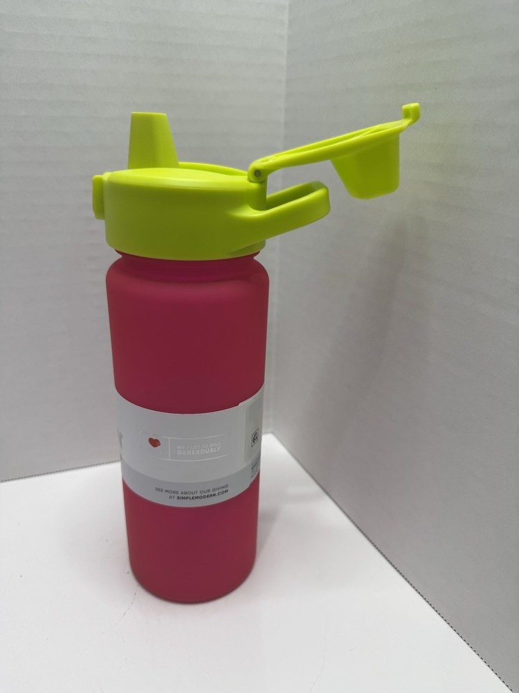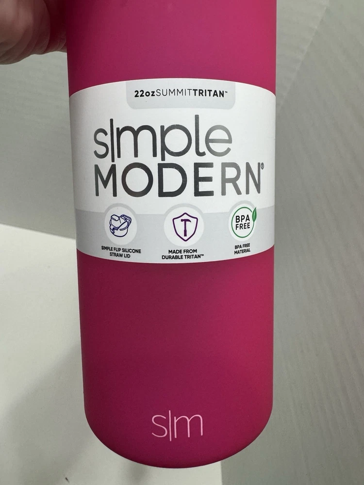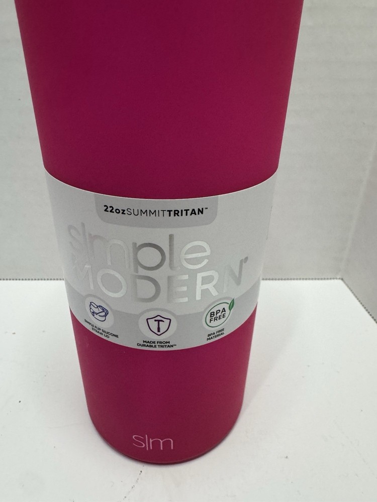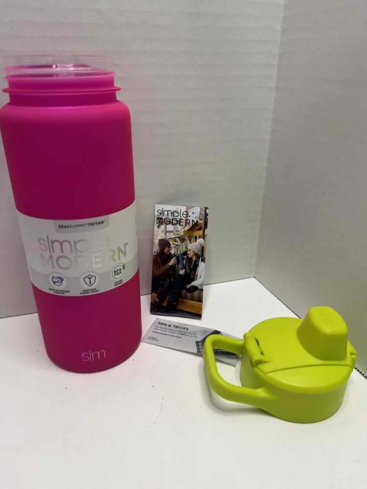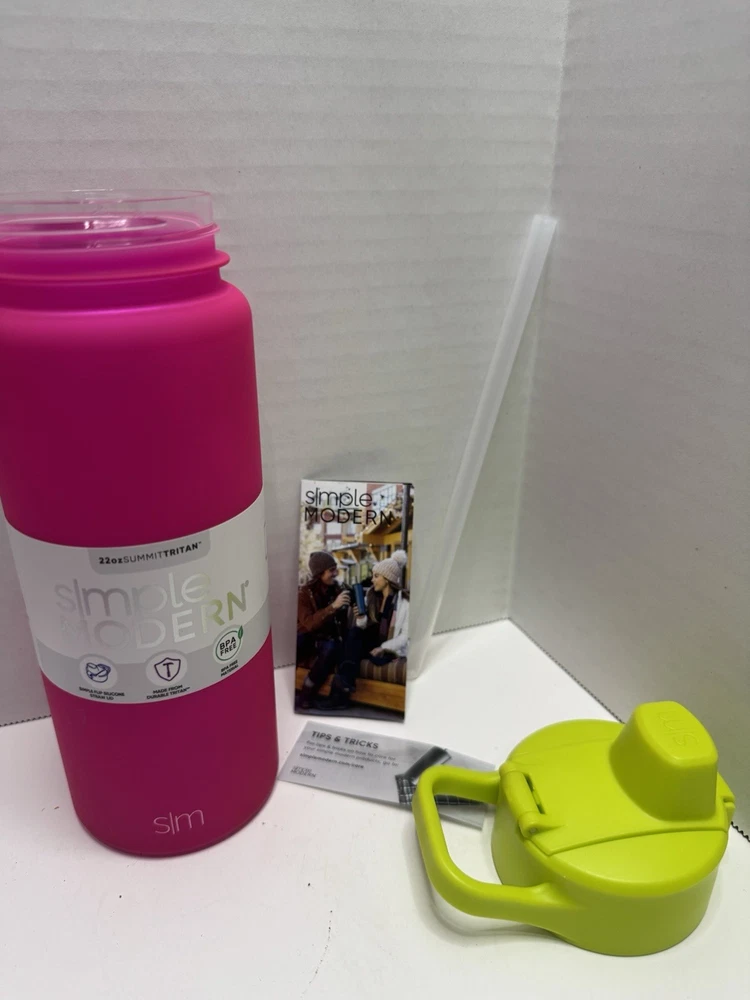The Simple Modern 22 fl oz Reusable Tritan Summit Water Bottle with Silicone Straw is a three-piece set featuring a solid pink color with a twist lid and a silicone straw. Made from durable plastic and silicone materials, this water bottle is ideal for cold beverages and is designed for easy sipping. With a capacity of 22 ounces, this water bottle is suitable for teens, boys, adults, girls, and kids alike. The exterior color is pink, making it a stylish and practical choice for staying hydrated on the go. Hand wash only to maintain its quality.