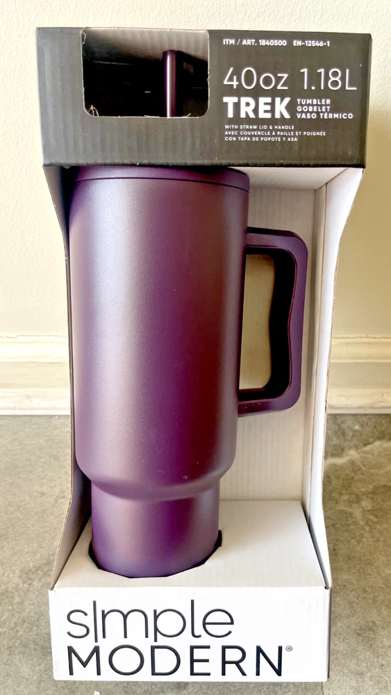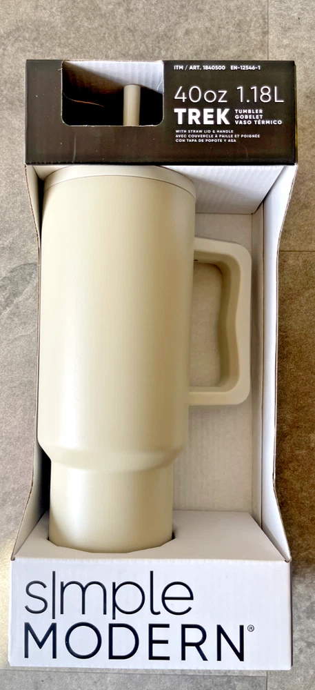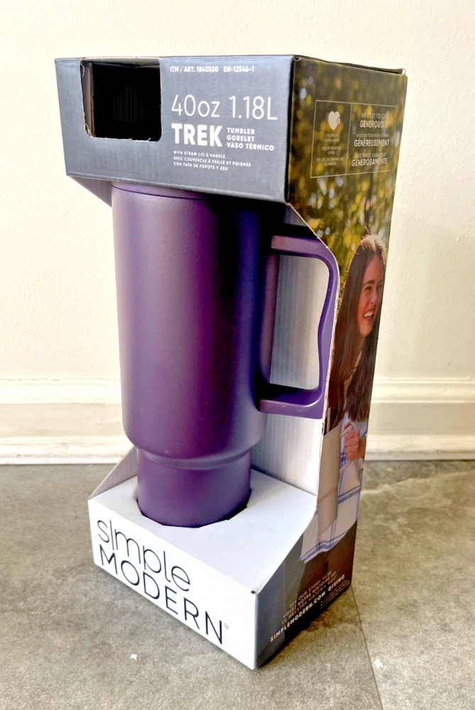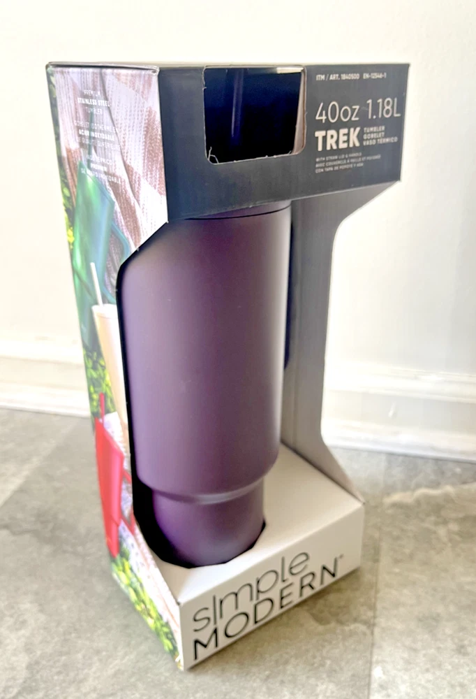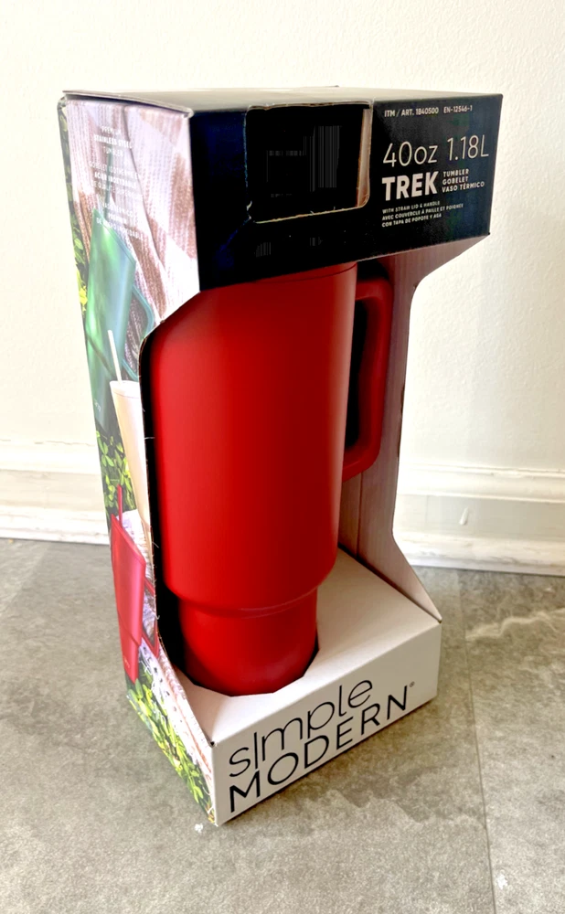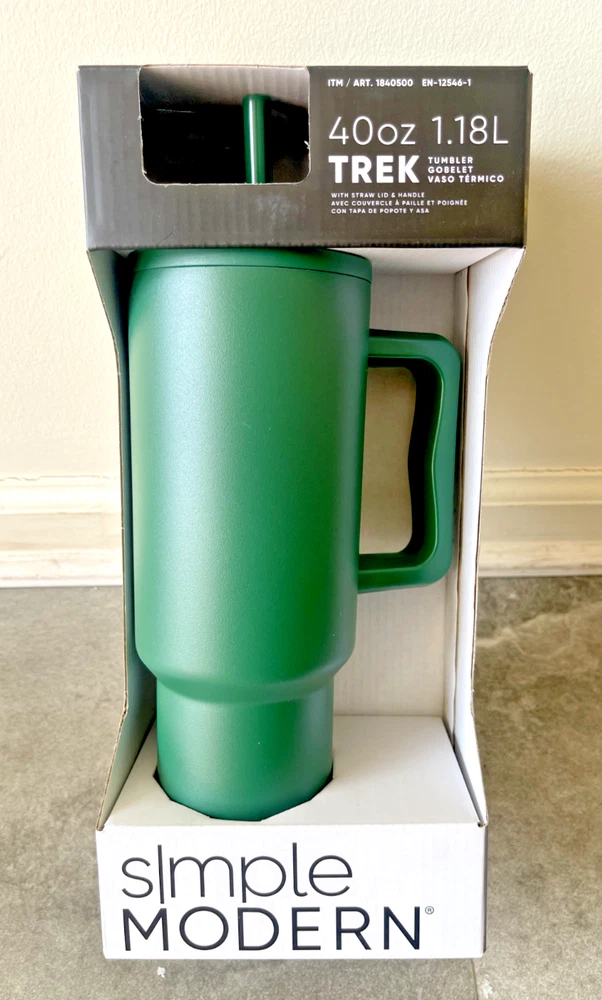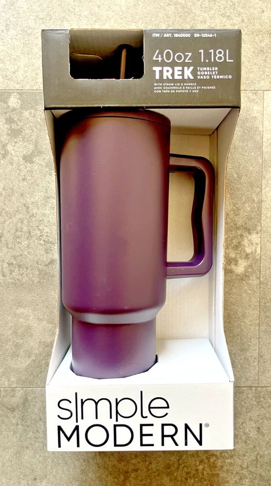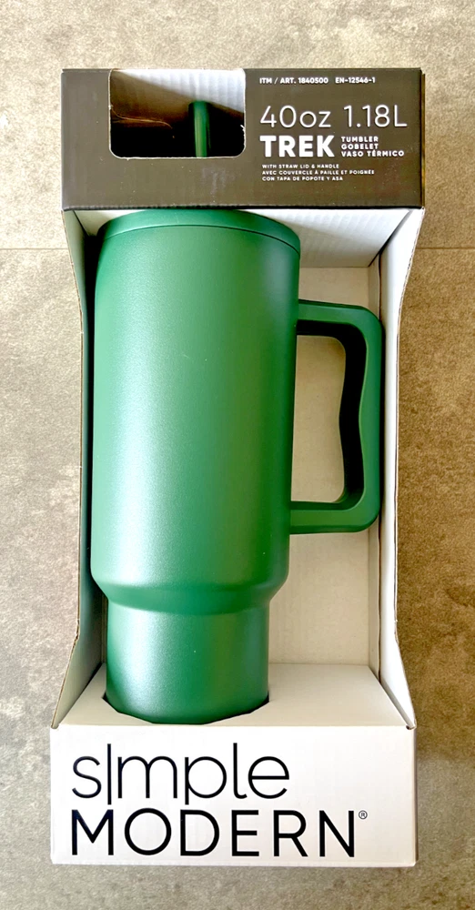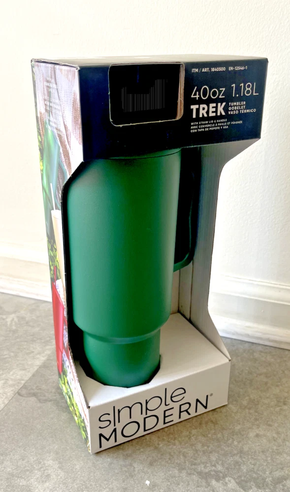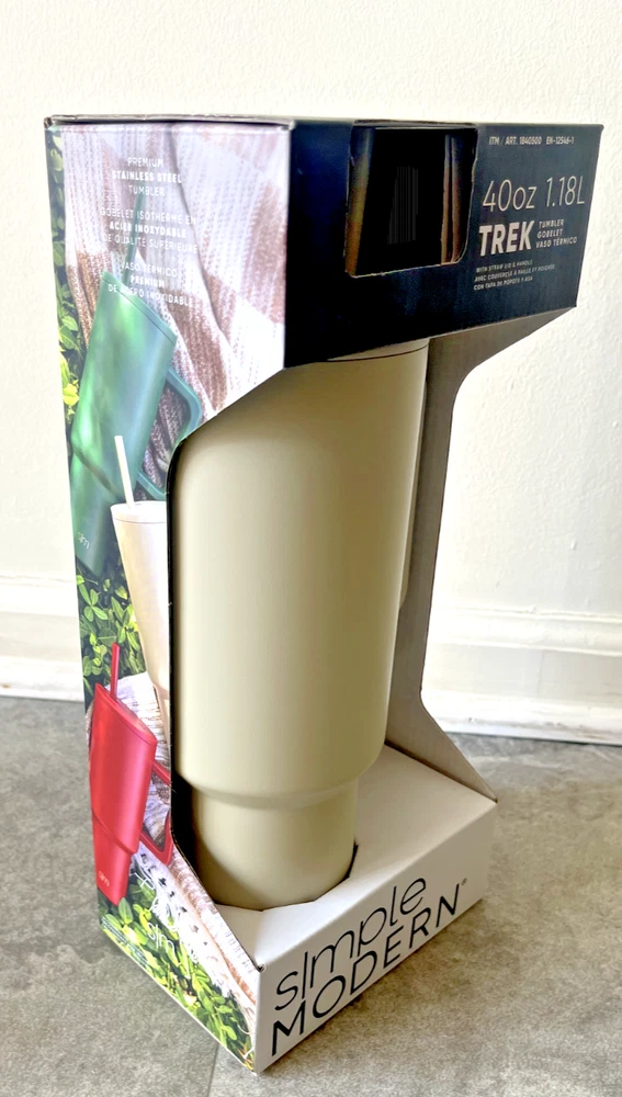 FAST FREE SHIPPING IN USA!!! ORDERS RECEIVED BEFORE 2PM - SAME DAY SHIPMENT!!! AFTER 2PM - NEXT DAY SHIPMENT!!! OUR WAREHOUSE WORKING MO-SAT (9am-9pm) CLEARANCE! Product Details Item may be available at your local warehouse for a lower, non-delivered price. The Simple Modern Trek Tumbler is double-walled and vacuum insulated to keep your drink hot or cold for hours. The tumbler is outfitted with an ergonomic handle that is aesthetically designed for comfort. The straw lid is four-way threaded to allow four different straw placements for your drinking hand preference. The Trek is made from 18/8 stainless steel and fits standard cupholders. Includes: 40oz Trek Tumbler with Handle Features: Double wall vacuum insulated Keeps cold drinks cold and hot drinks hot for 24 hours Cap holder friendly Dishwasher safe Ergonomic handle Dimensions: 5.46" L x 3.7" W x 12.03" H Specifications Brand Simple Modern Capacity 40 Ounce Cleaning Recommendation Dishwasher Safe Dimensions - Tall 12.03 in. Features Insulated Material Stainless Steel Number of Pieces 1 Piece