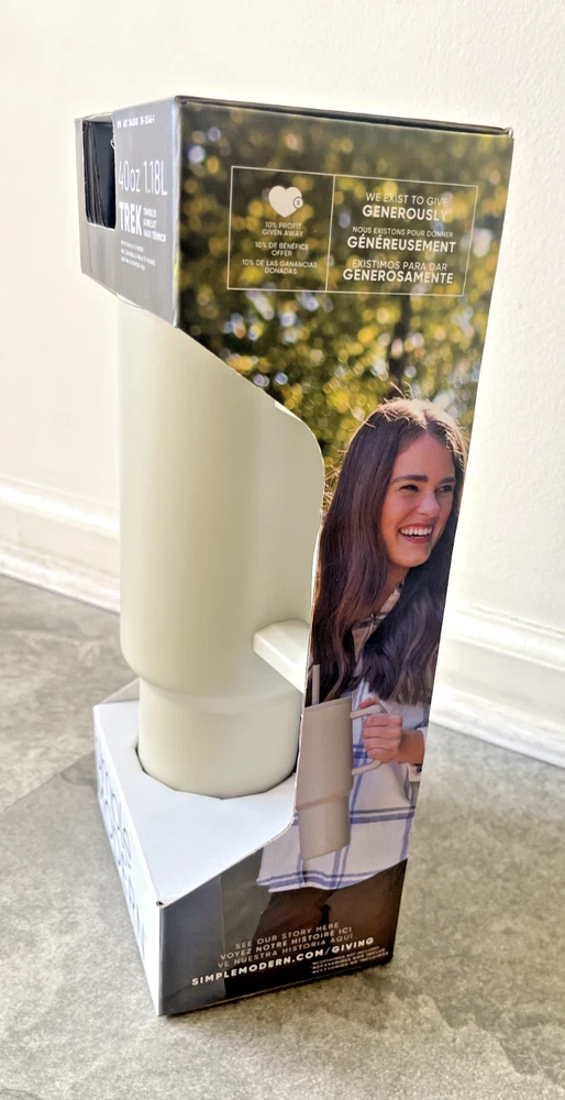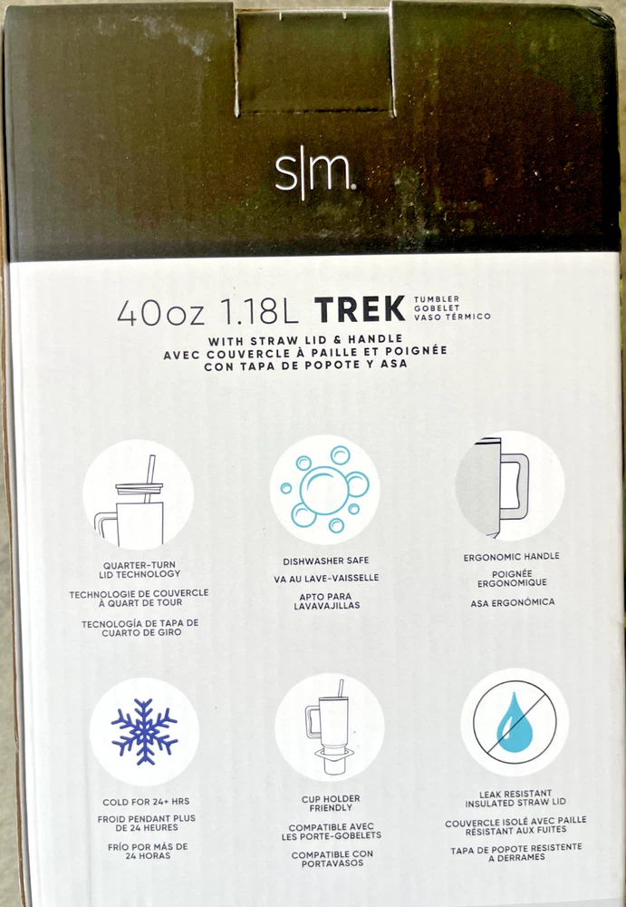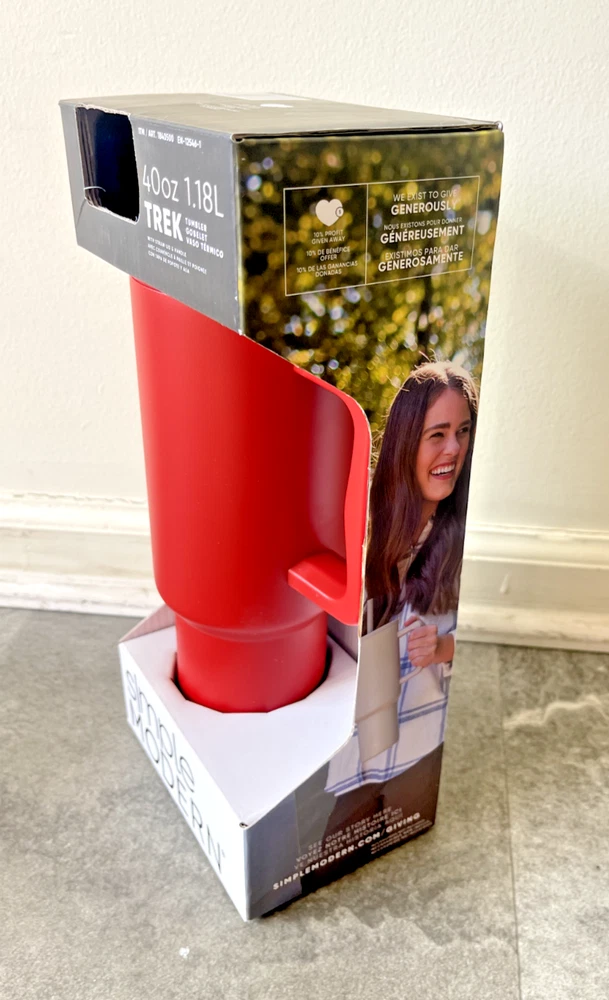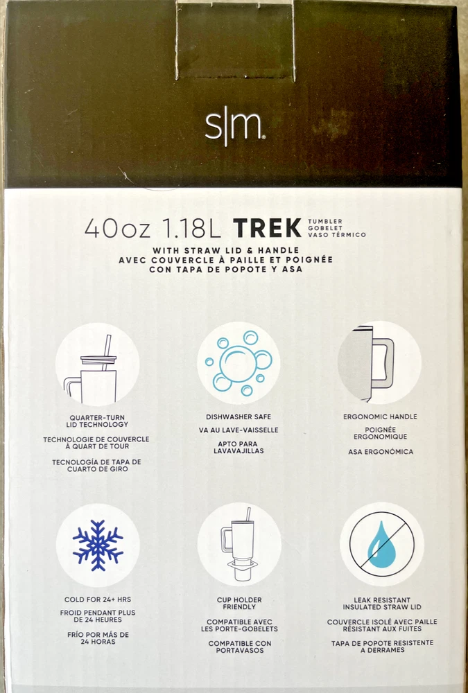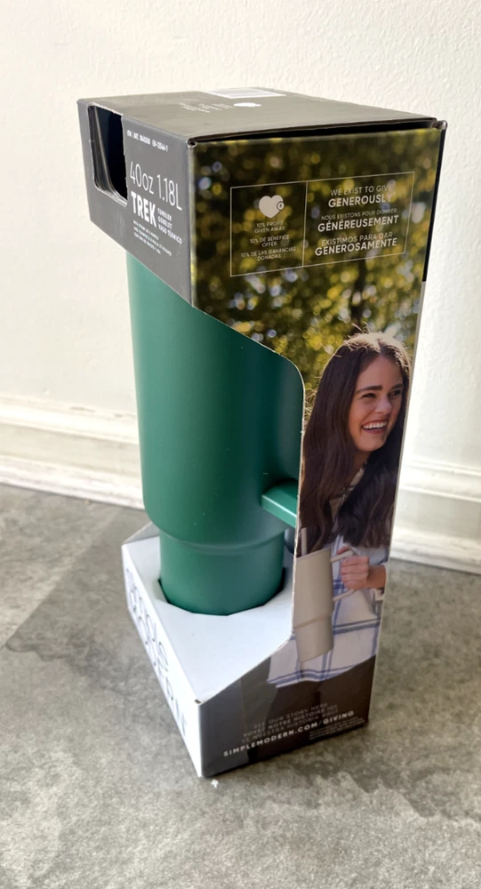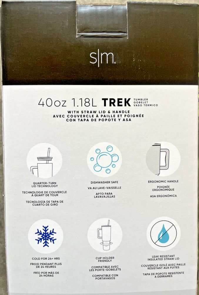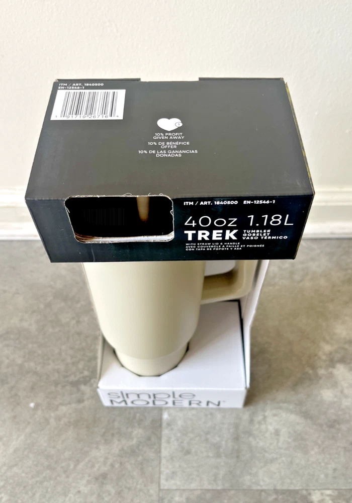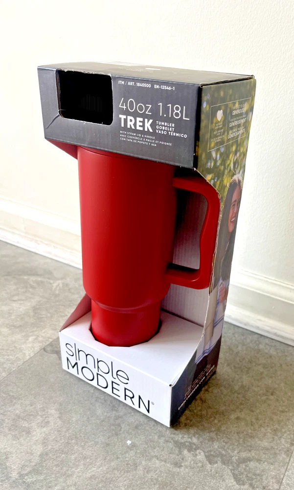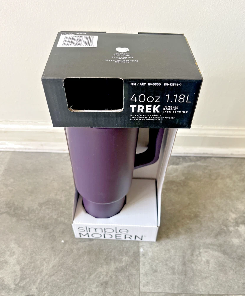 FAST FREE SHIPPING IN USA!!! ORDERS RECEIVED BEFORE 2PM - SAME DAY SHIPMENT!!! AFTER 2PM - NEXT DAY SHIPMENT!!! OUR WAREHOUSE WORKING MO-SAT (9am-9pm) CLEARANCE! Product Details Item may be available at your local warehouse for a lower, non-delivered price. The Simple Modern Trek Tumbler is double-walled and vacuum insulated to keep your drink hot or cold for hours. The tumbler is outfitted with an ergonomic handle that is aesthetically designed for comfort. The straw lid is four-way threaded to allow four different straw placements for your drinking hand preference. The Trek is made from 18/8 stainless steel and fits standard cupholders. Includes: 40oz Trek Tumbler with Handle Features: Double wall vacuum insulated Keeps cold drinks cold and hot drinks hot for 24 hours Cap holder friendly Dishwasher safe Ergonomic handle Dimensions: 5.46" L x 3.7" W x 12.03" H Specifications Brand Simple Modern Capacity 40 Ounce Cleaning Recommendation Dishwasher Safe Dimensions - Tall 12.03 in. Features Insulated Material Stainless Steel Number of Pieces 1 Piece