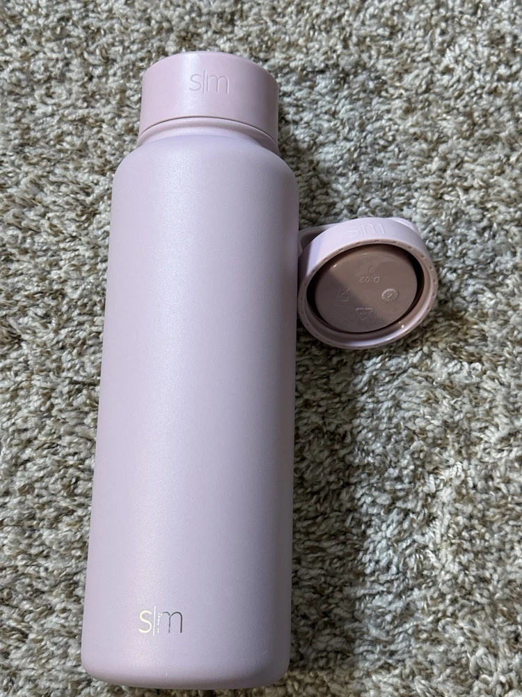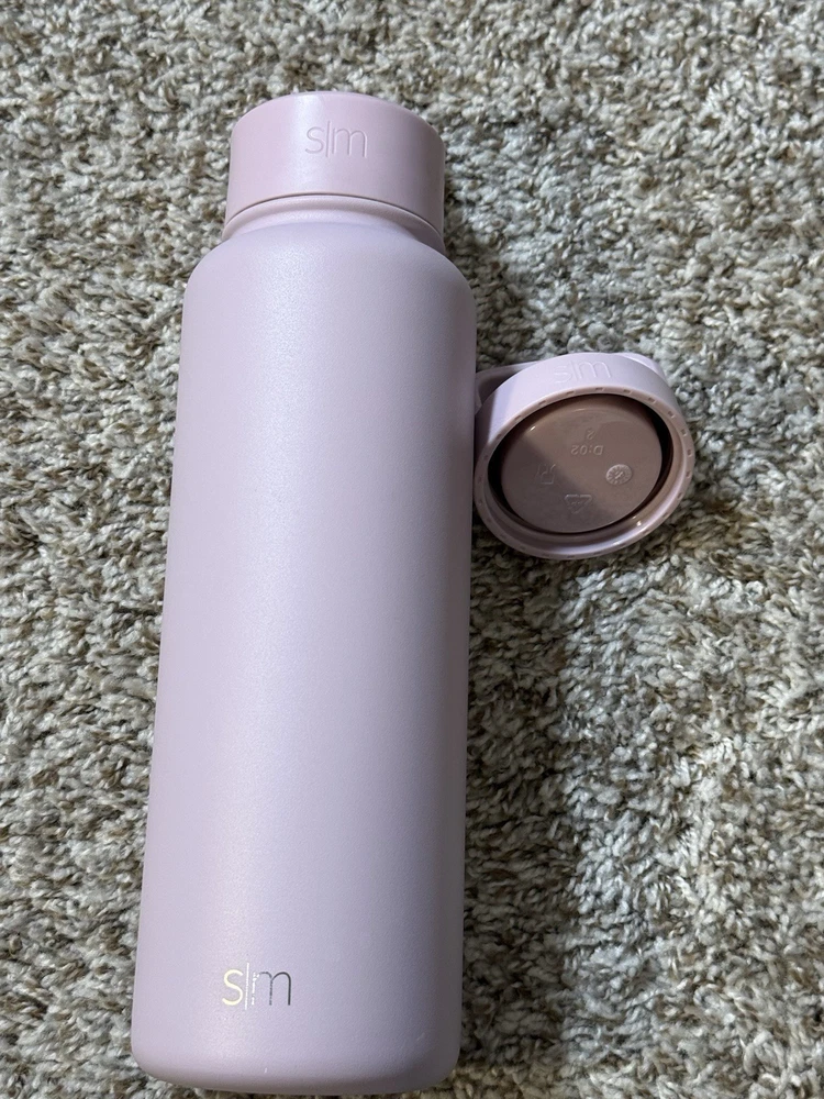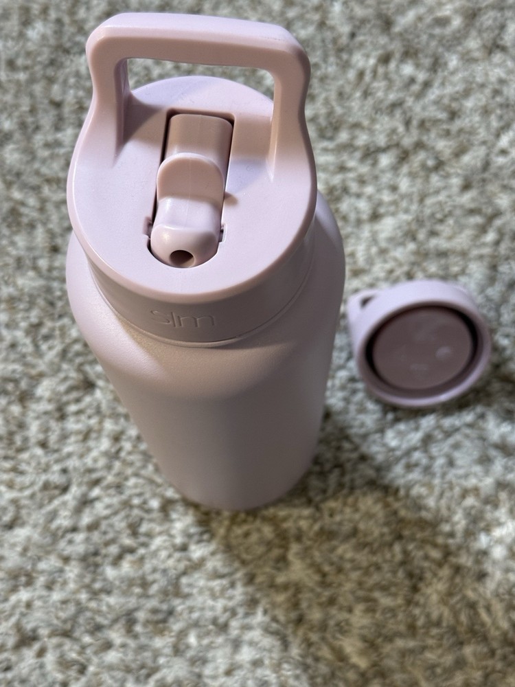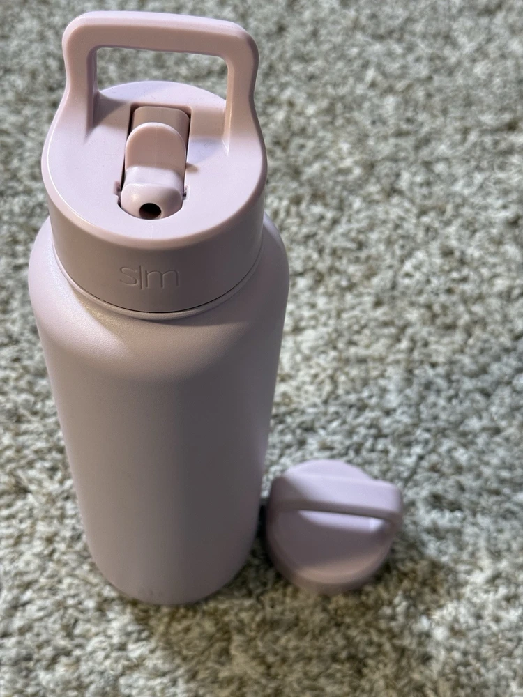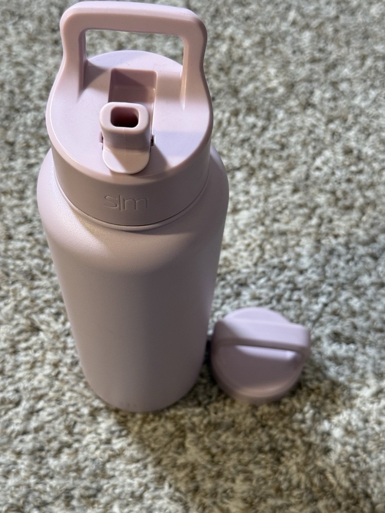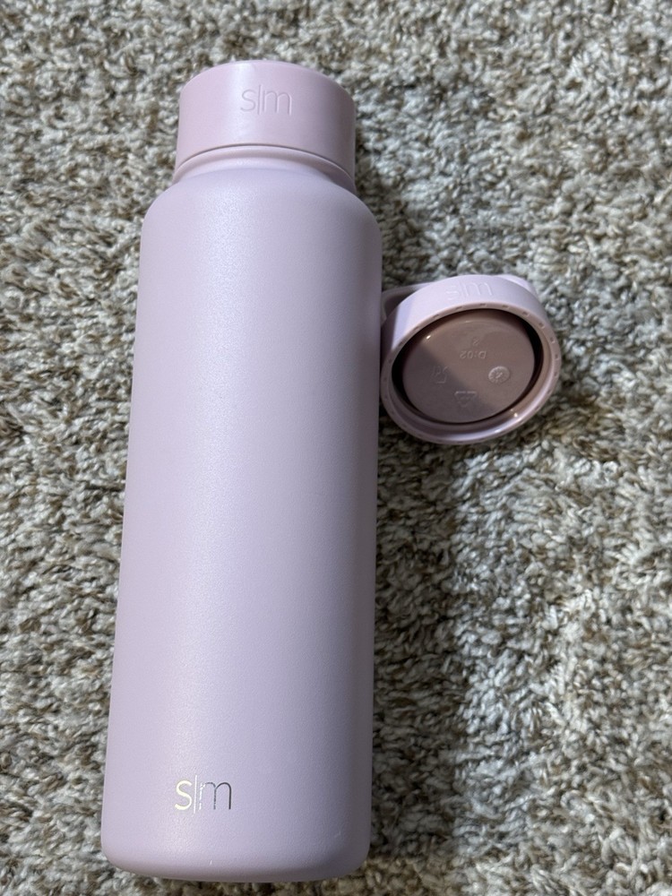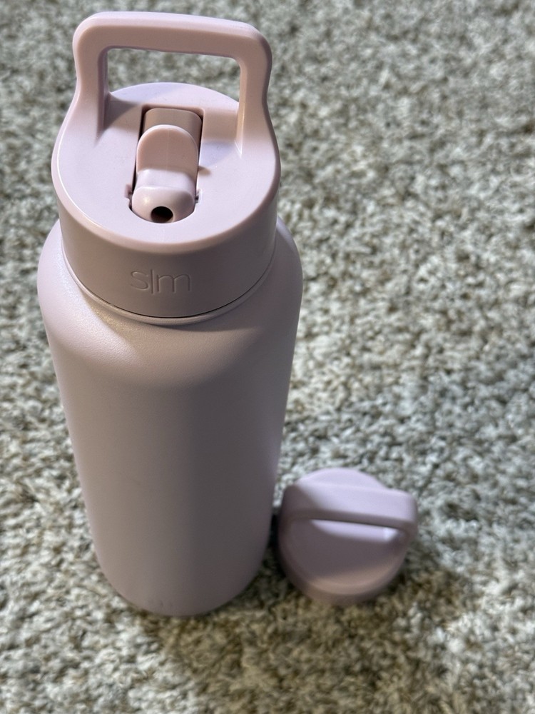Simple Modern Summit insulated stainless steel water bottle in a soft lavender/pastel purple finish, featuring the flip straw lid with carry handle and an additional screw-on cap included. Double-wall vacuum insulation helps keep drinks cold for hours, while the powder-coated exterior provides a smooth, durable grip. Bottle shows light cosmetic wear from normal use with no dents or cracks; lids function properly and seal as expected. Clean inside and out and ready for daily use at the gym, office, or on the go. Please review photos for exact condition and details. Ships fast — usually within 24 hours.