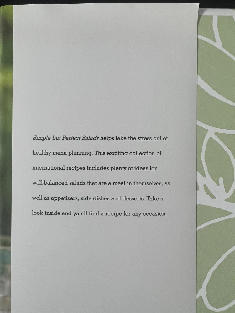This cookbook is a game-changer for salad lovers! Packed with fresh, easy-to-follow recipes, it turns simple ingredients into vibrant, flavorful dishes. The hardcover edition is sturdy and beautifully illustrated, making it a joy to use. Whether you're a beginner or a seasoned cook, the variety of vegetarian and low-carb options keeps meals exciting. A fantastic addition to any kitchen!