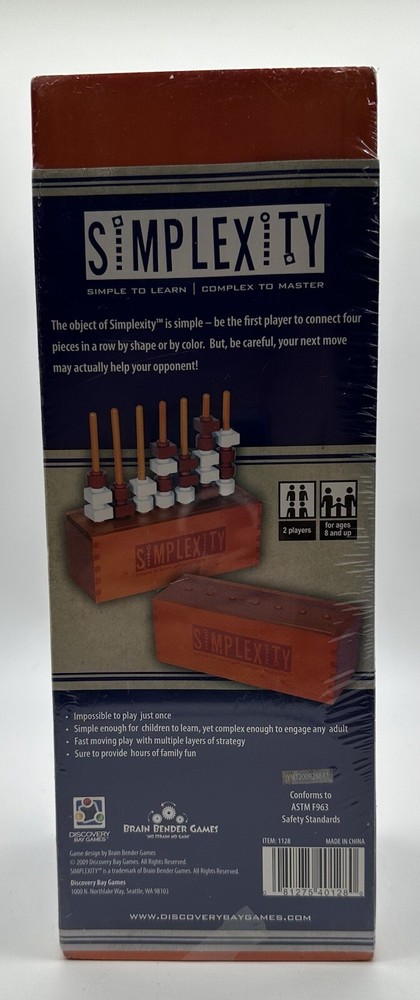 This is a brand new sealed game, but there is a small tear in the seal. Get ready for an exciting game night with Simplexity by Brain Bender Games. This skill and action game is perfect for 2 players and promises hours of fun. The game is complete and brand new in box, ready to be played. Simplexity, released in 2009, is a strategy game that challenges players to think outside of the box. With its easy-to-learn rules and complex gameplay, it's a game that's perfect for everyone aged 8-11 years. Whether you're an experienced gamer or just starting out, you're sure to have a blast with Simplexity. So, get ready to test your skills and outwit your opponent in this exciting game of strategy!