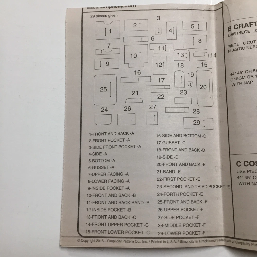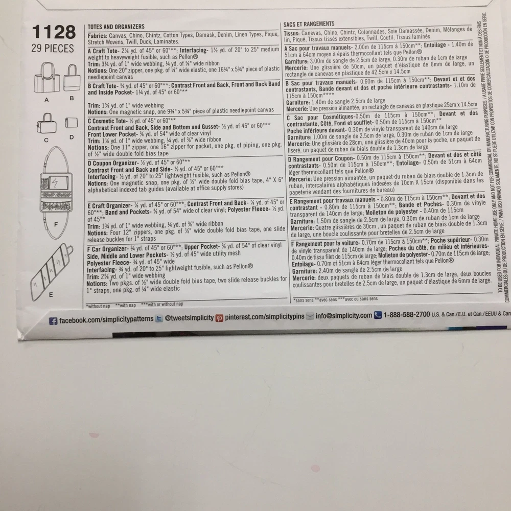 Simplicity 1128 Totes Organizer Travel Bag Car Organizer Pattern Cut All pieces included U ncut