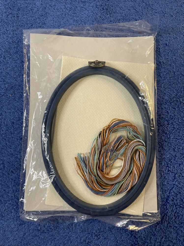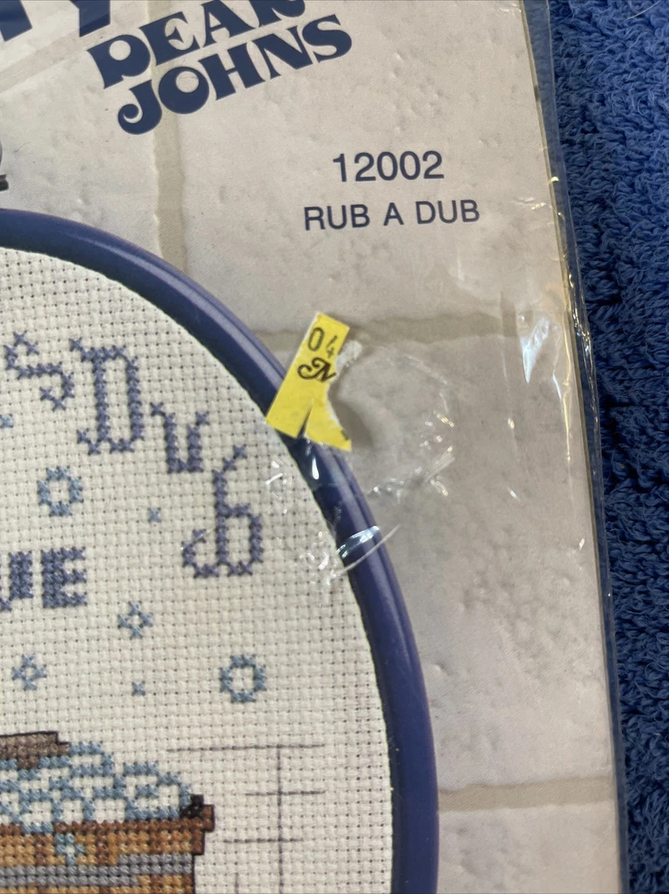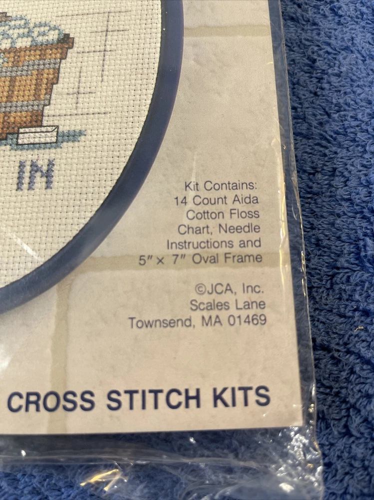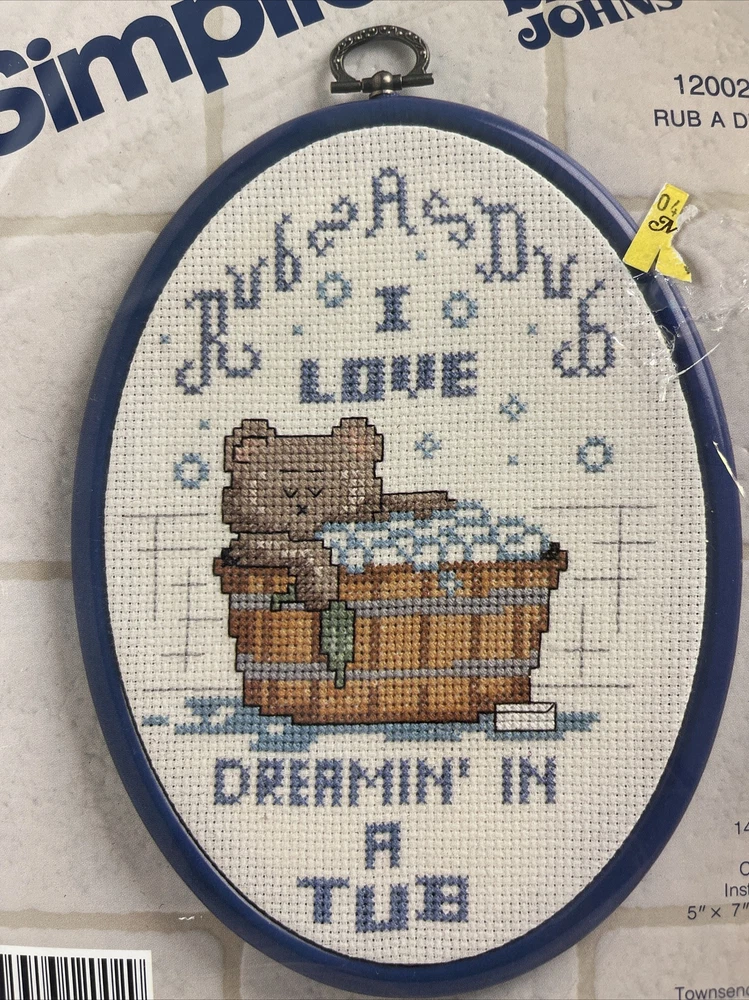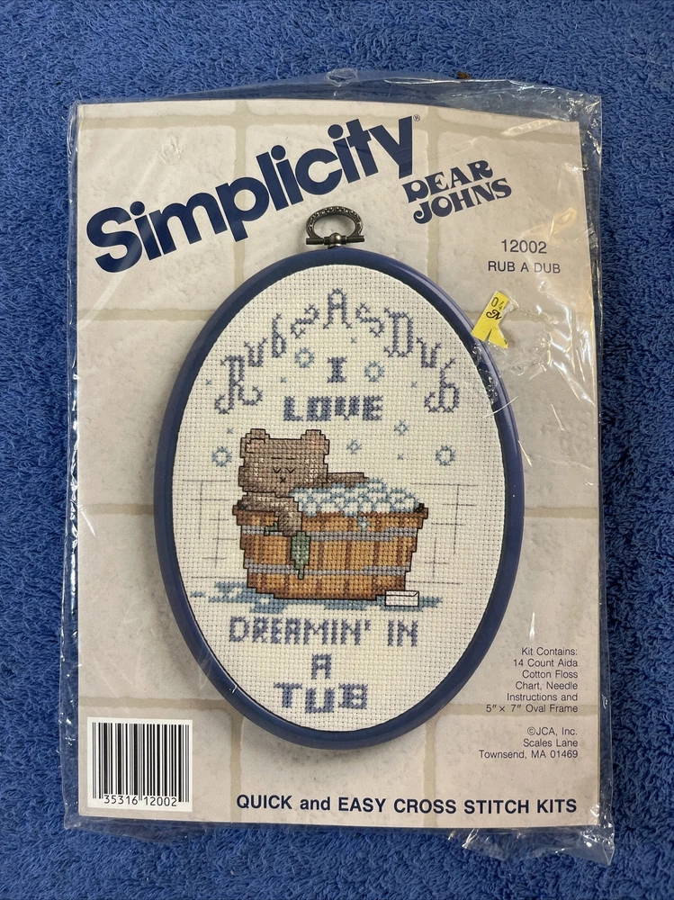 Simplicity Dear Johns Bathroom Cross Stitch Kit 5"x7" Oval 12002 Rub A Dub. Small hole in front of package-see pictures-items unharmed.