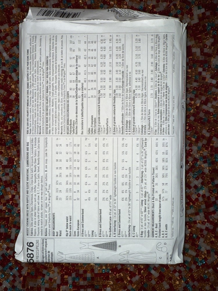 Explore endless sewing possibilities with the Simplicity Pattern 5876, a comprehensive collection that includes patterns for a variety of projects. Whether you're aiming to create a stunning evening dress, a charming purse, or a sophisticated cummerbund, this pattern set has got you covered. With size ranges from 6 to 12, it accommodates a wide array of adult female sizes, ensuring a perfect fit for your sewing endeavors. Add a touch of vintage flair to your crafting with designs that echo the elegance of the 1930s. Each pattern in this uncut, factory-folded set is meticulously crafted in the United States, featuring distinctive sleeve variations and delightful ruffles that bring a dash of romance to any creation. Dive into your next project with the confidence that you're working with a classic pattern from Simplicity.