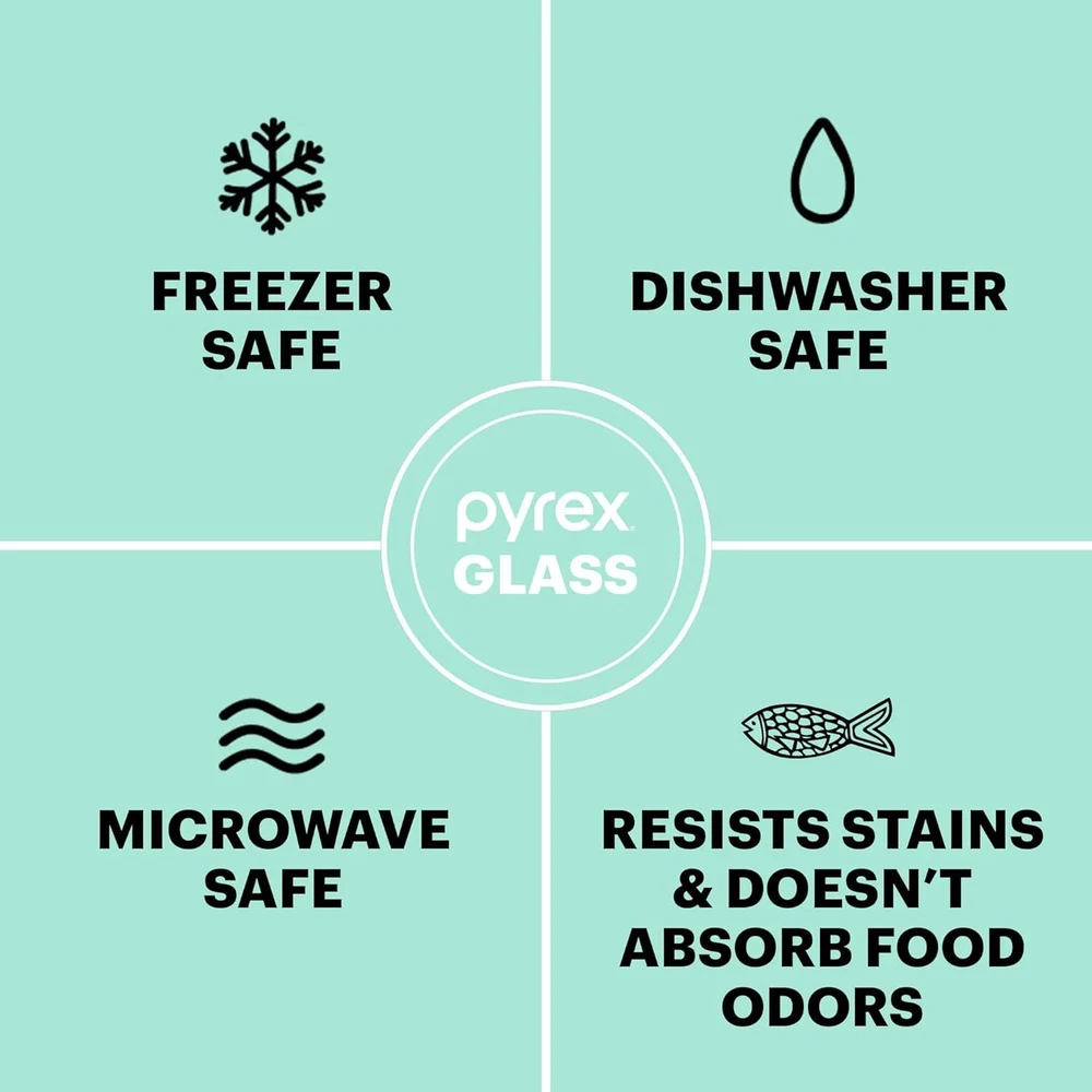 From the manufacturer Your go-to for cooking and baking adventures. At Pyrex, we celebrate a love of food and the memories around it. Let us help you make something delicious! Pyrex Simply Store Glass Rectangular and Round Food Container Set (18-Piece, BPA-free) Pyrex glass can be used for storage, baking, serving, cooking and microwaving. Pyrex glass storage items are ideal for refrigerator and freezer storage or taking items on the go. Glass vessels are microwave, dishwasher, freezer and oven safe. Plastic lids are BPA free and top-rack dishwasher safe. Set Includes 18 pieces: (1) 1-cup round dish with green plastic lid (2) 2-cup round dish with orange plastic lid (2) 4-cup round dish with blue plastic lid (1) 7-cup round dish with red plastic lid (2) 3-cup rectangle dish with green plastic lid (1) 6-cup rectangle dish with red plastic lid Pyrex: A Trusted Brand Product Description These versatile glass dishes have color-coded airtight lids for easy organizing in pantry, fridge or freezer. Durable, pure Pyrex glass stands up to the microwave and dishwasher use after use, and because it’s stain and odor resistant, it stays clean and preserves your food’s fresh flavors. This set includes (1) 1-Cup Round Glass Storage Containers with Lids, (1) 6-Cup Rectangular Glass Storage Containers with Lids, and (1) 7-Cup Round Glass Storage Containers with Lids, (2) 2-Cup Round Glass Storage Containers with Lids, (2) 4-Cup Round Glass Storage Containers with Lids and (2) 3-Cup Rectangular Glass Storage Containers with Lids.