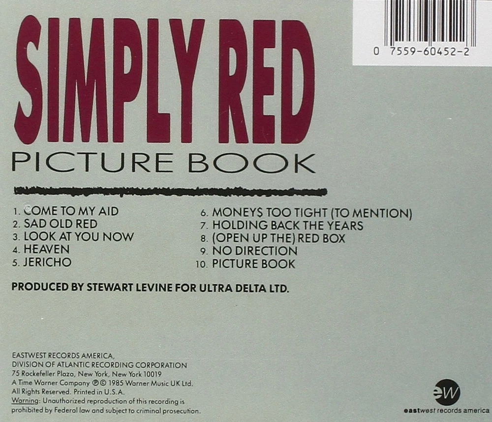 Further Details Title: Picture Book Condition: New Format: CD Description: EDITORIAL REVIEWS Simply Red Picture Book Genre: R&B Artist: Simply Red No Of Discs: 1 Record Label: East/West Records EAN: 0075596045223 Missing Information? Please contact us if any details are missing and where possible we will add the information to our listing.