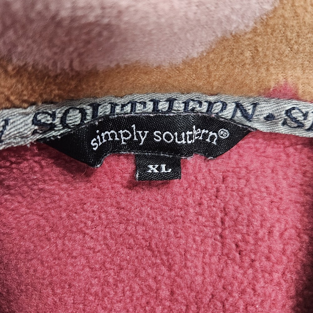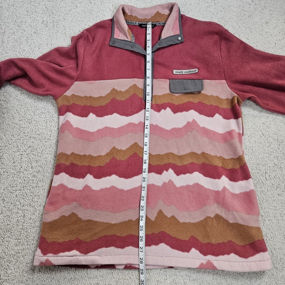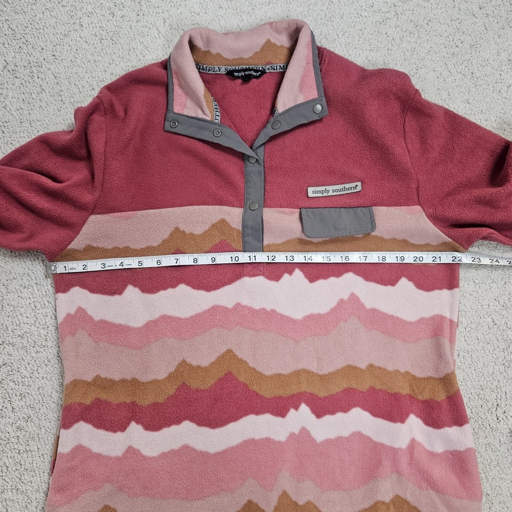 Simply Southern Fleece T Snap Pullover Pink Mauve Womens XL Mountain Pattern Cozy Layer Fall Winter Good pre-owned condition